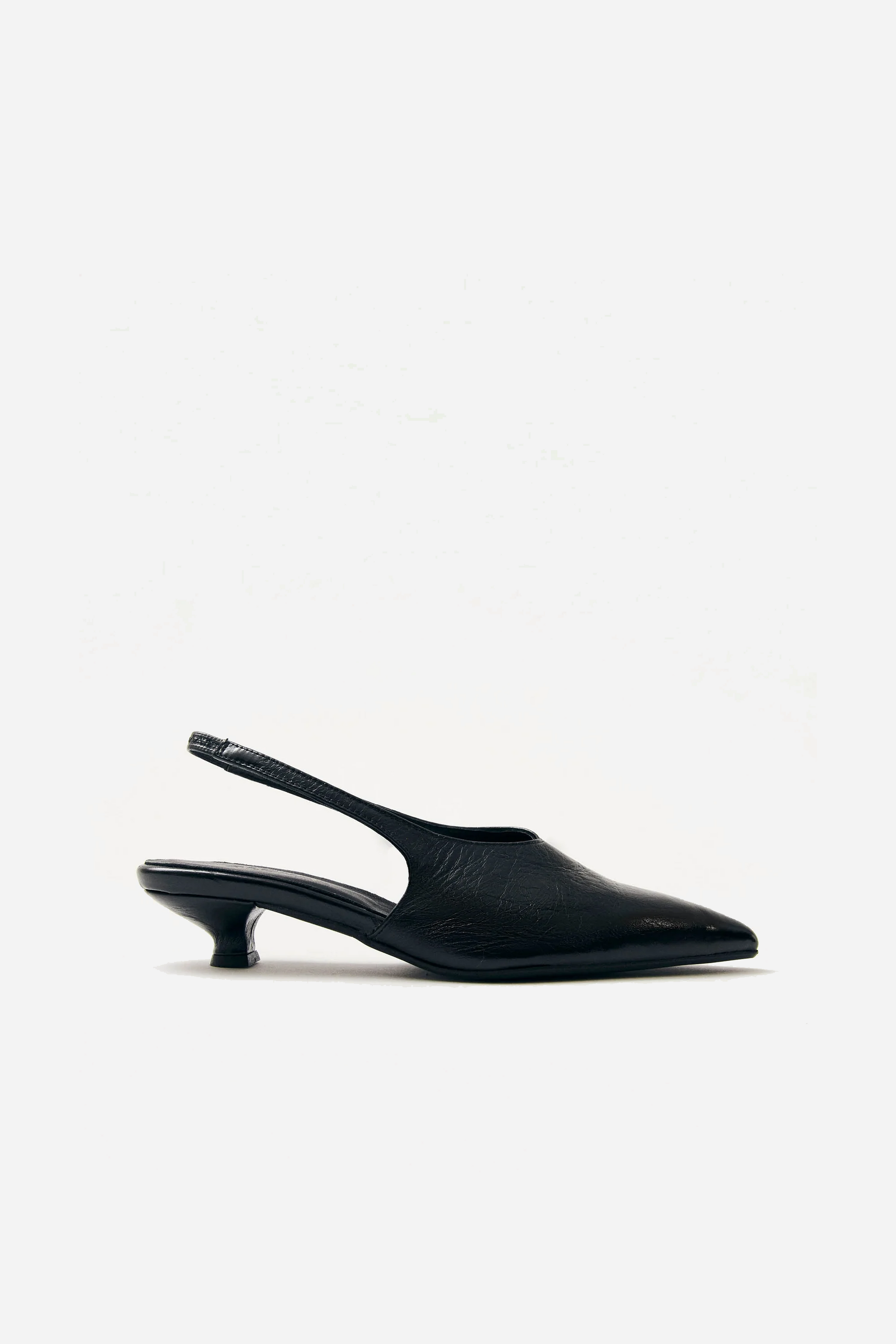 Eros Leather Pumps Black fra ALOHAS. Disse sko er fremstillet i læder. De er designet med en spids snude, elastik strop, og hæl.