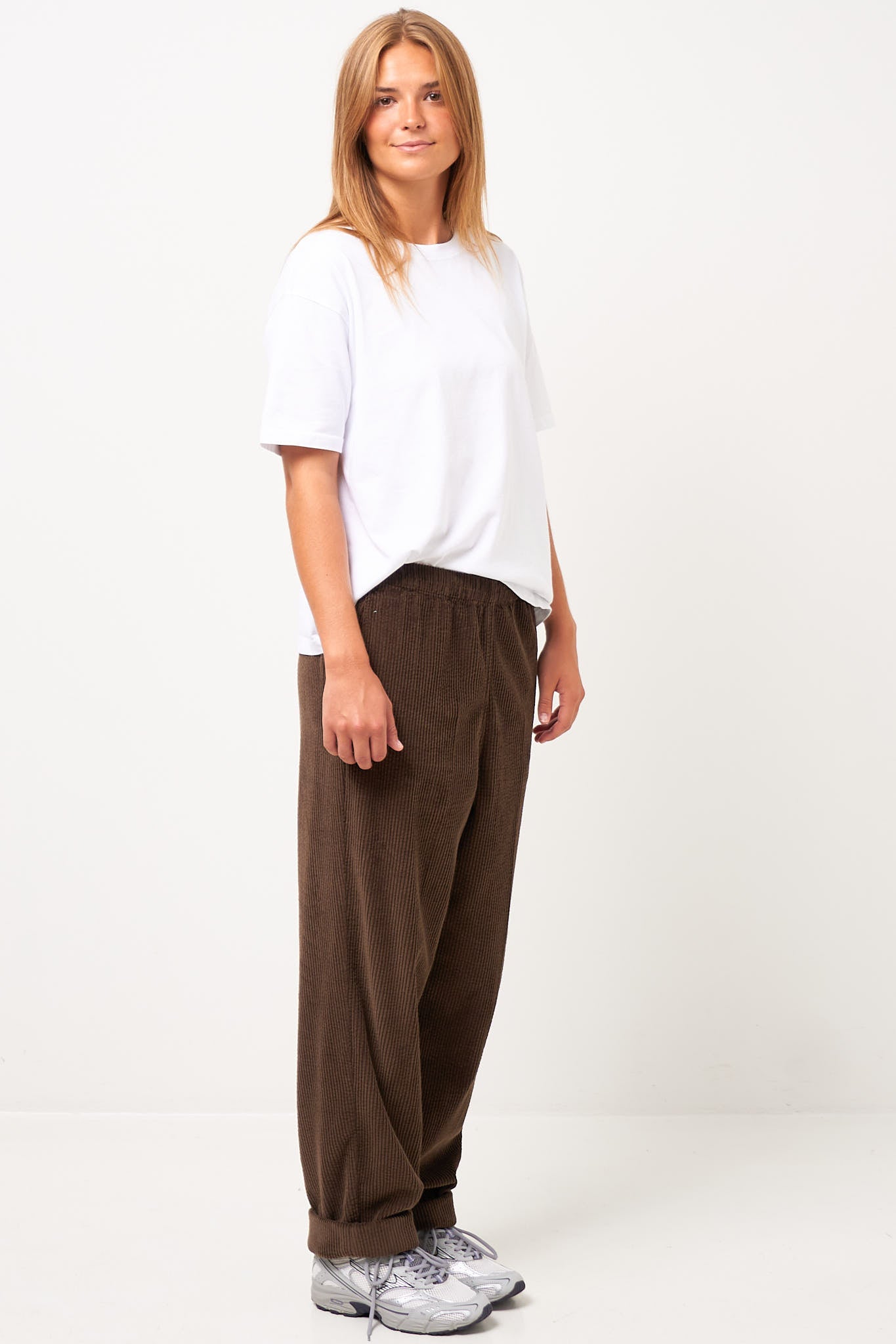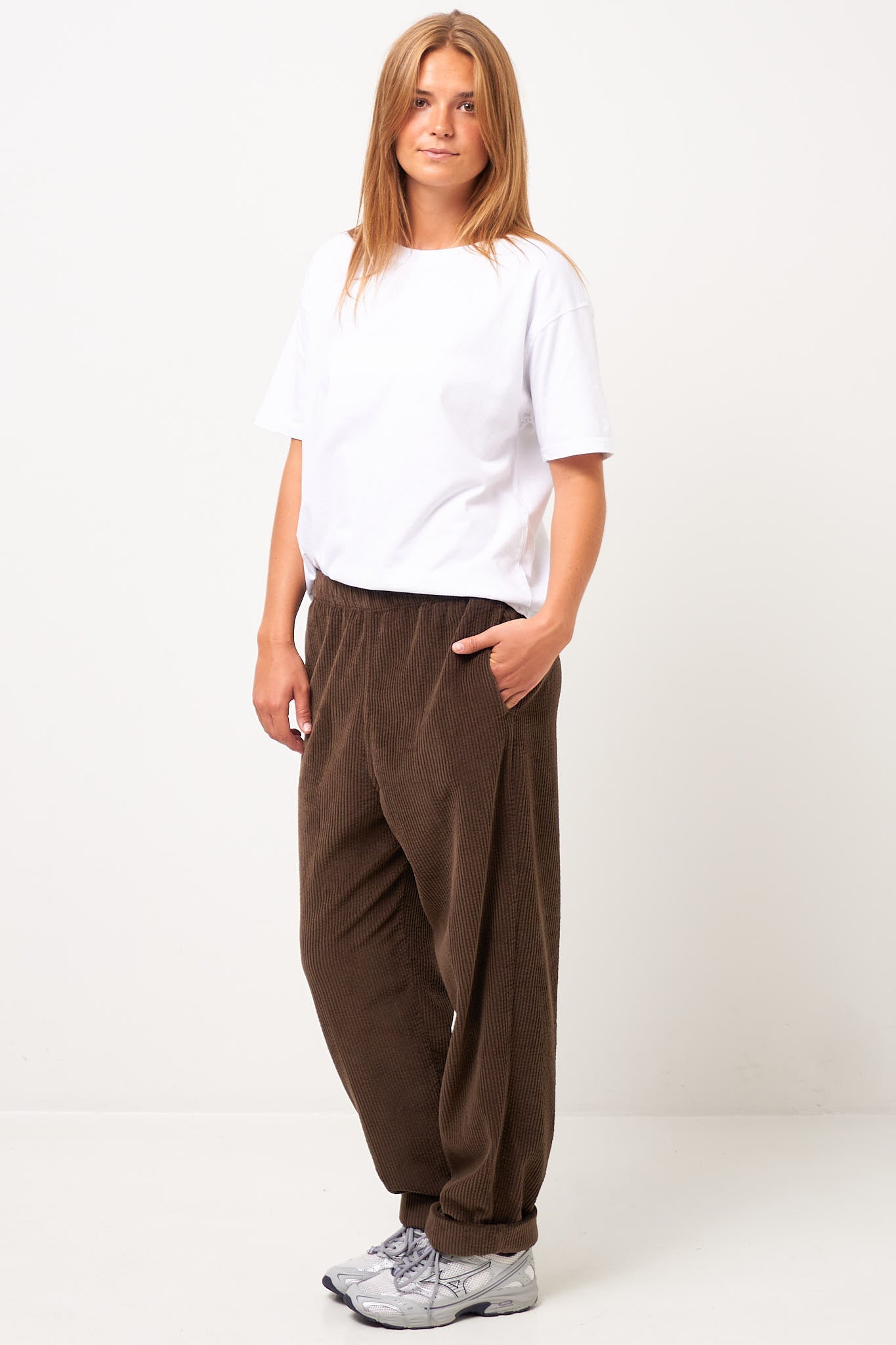 Padow Pants Bear Vintage fra American Vintage. Disse bukser er fremstillet i bomuldsfløjl. Bukserne har en afslappet pasform. De har en elastisk talje med en skjult snøre, skrå sidelommer og ombukket kant ved anklerne.