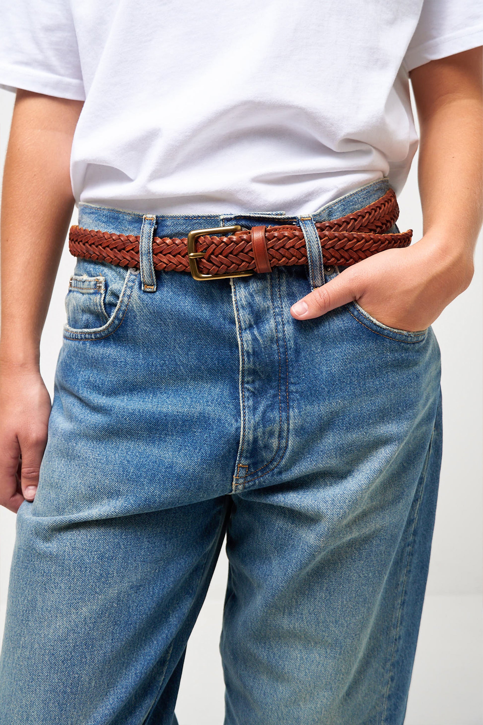 3cm Polo Tip Tan fra Dragon Diffusion. Dette bælte er håndlavet i Indien og er designet i flettet læder. Bæltet har et guldfarvet spænde og er justerbart.