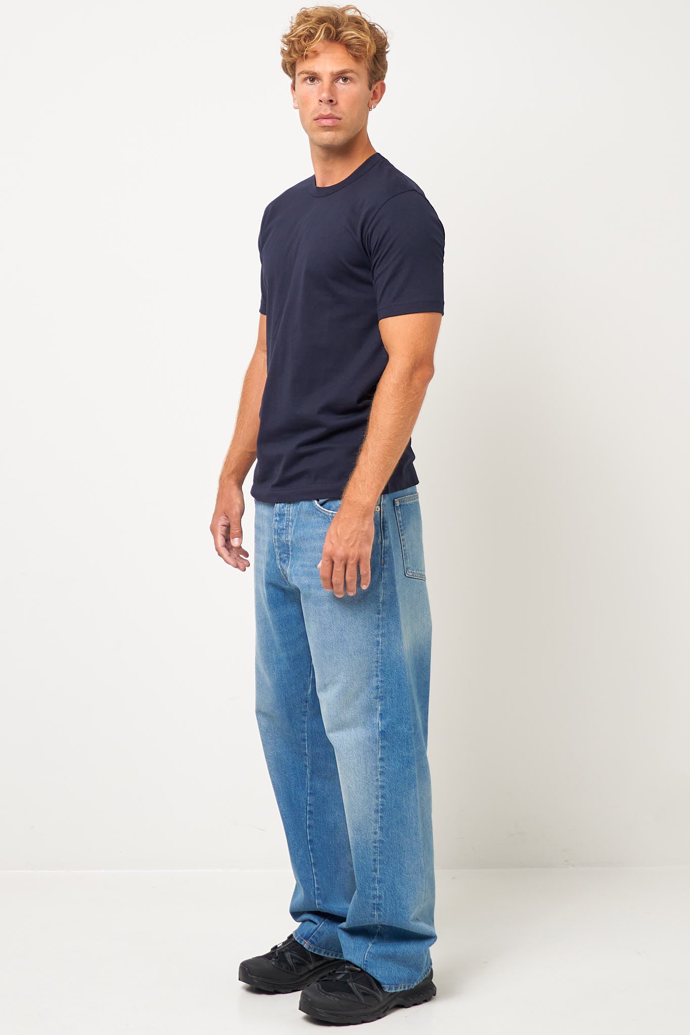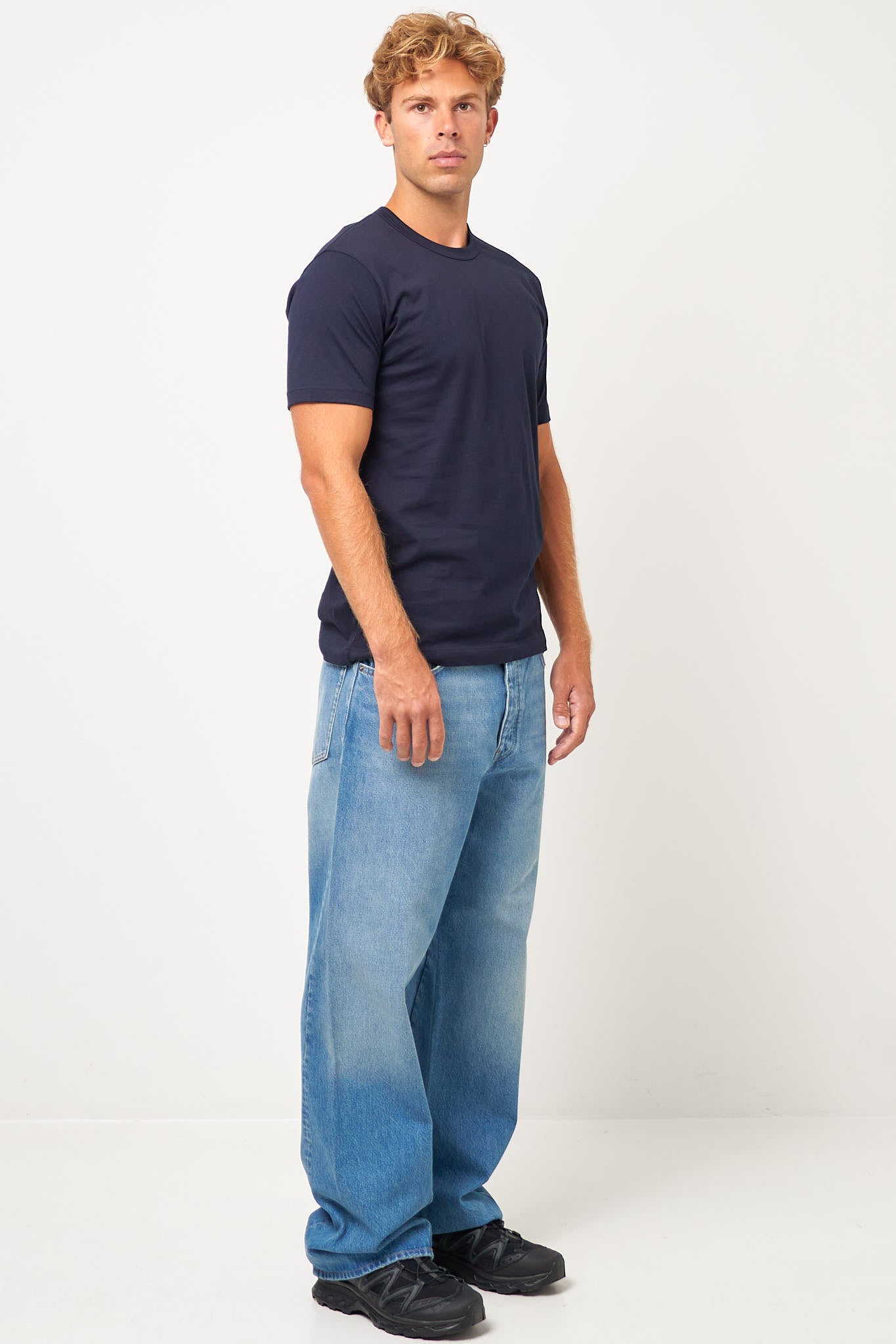 CDG Forever T-Shirt Navy fra Comme des Garçons SHIRT. Denne t-shirt er fremstillet i bomuld. Den er designet med en normal pasform, rund halsudskæring og korte ærmer. T-shirten har et printet Comme des Garçons SHIRT logo øverst på bagsiden.