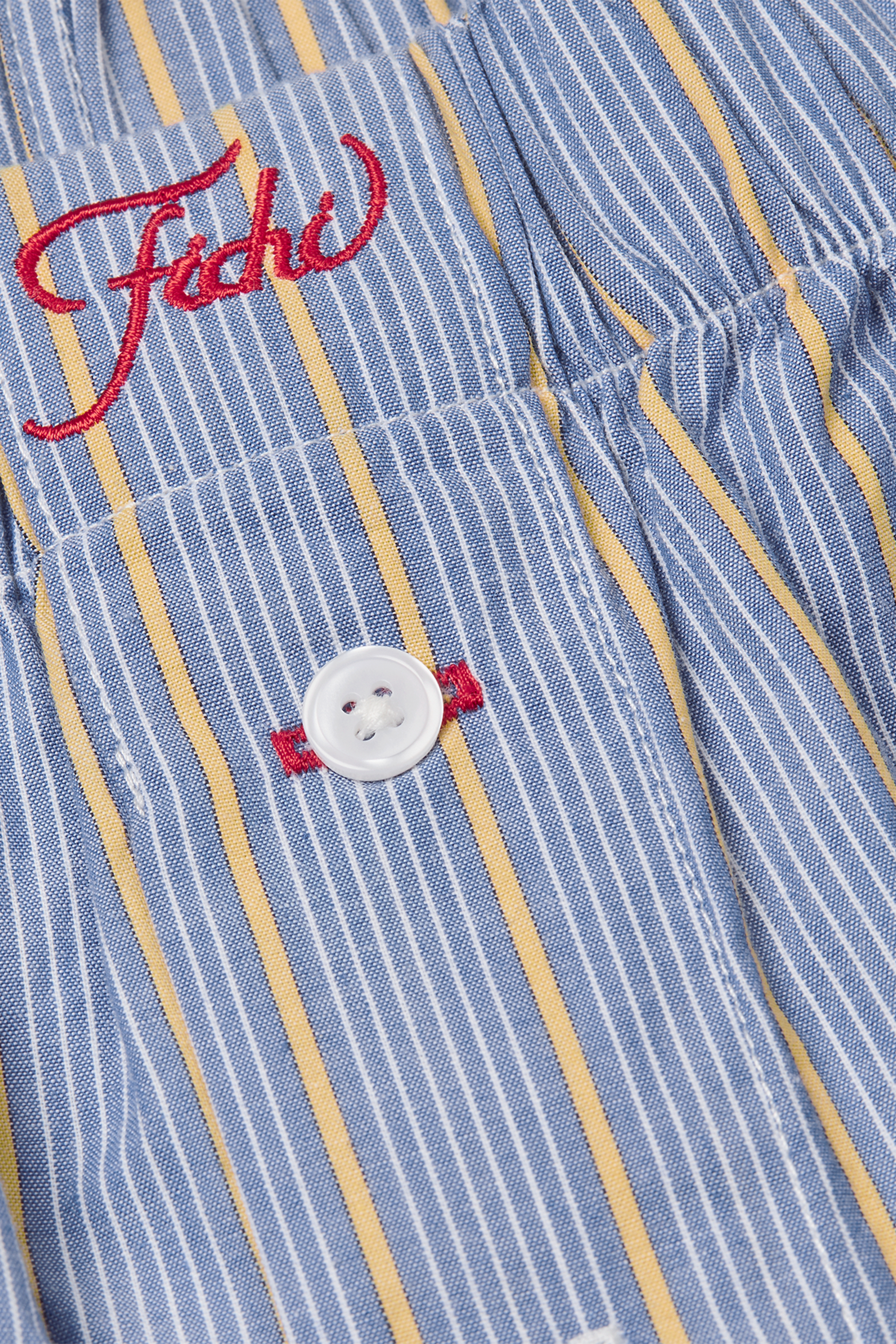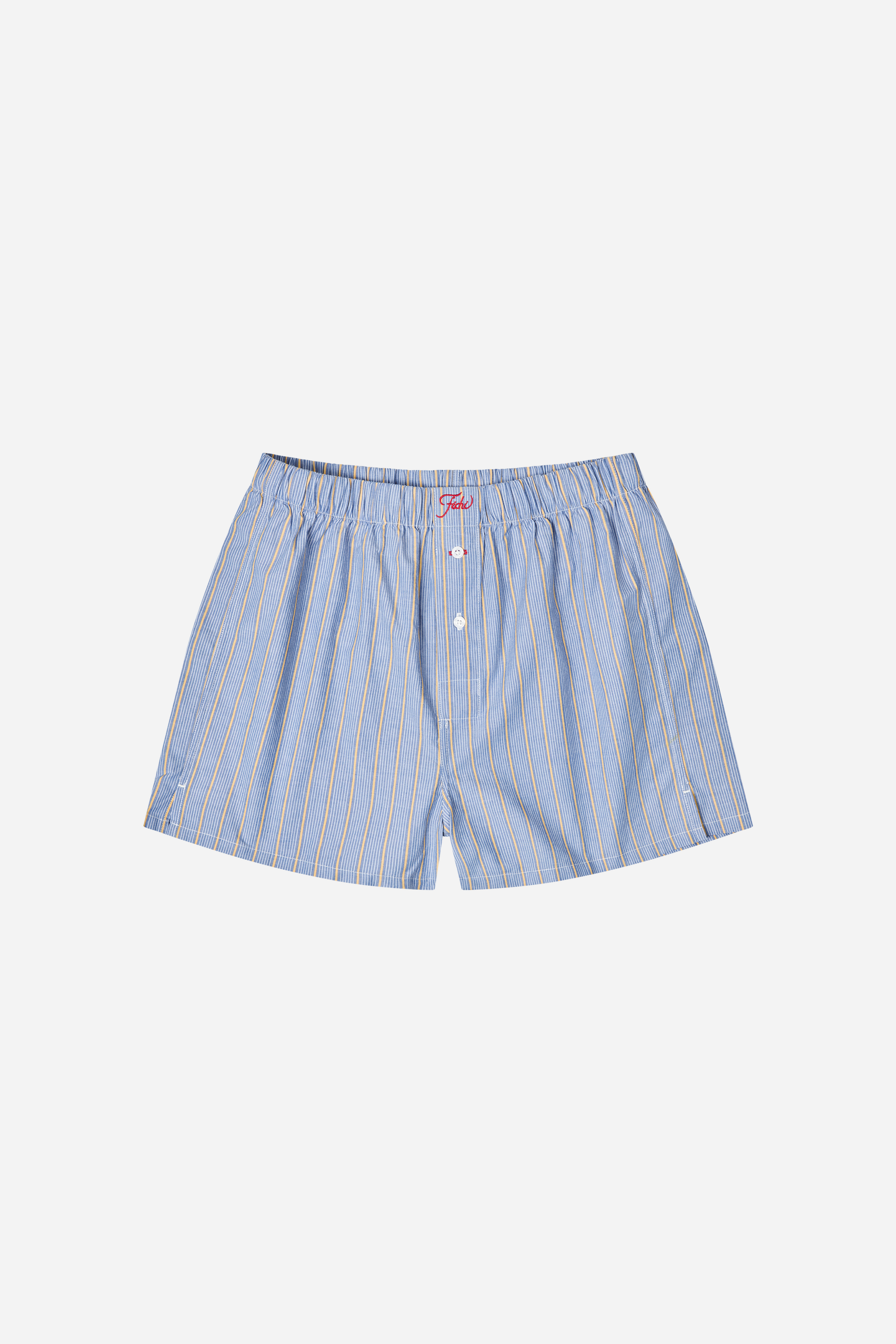 Ocean Blue And Yellow Stripe Boxers fra Fichi. Disse boxershorts er fremstillet i bomuld. De er designet med elastik i livet og knapper fortil. Disse underbukser har et broderet Fichi logo fortil. Underbukserne kommer i en pose i samme metervare.