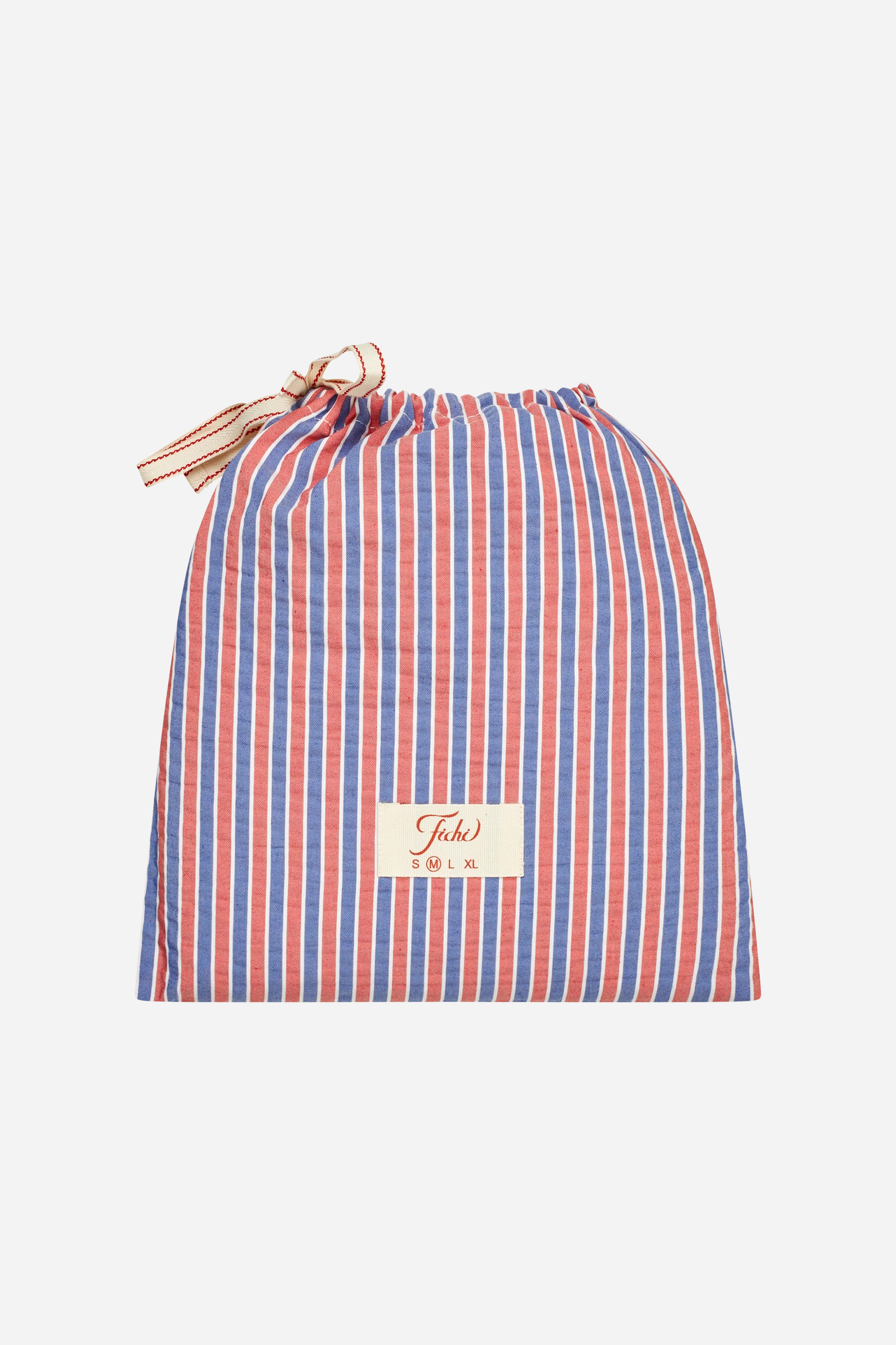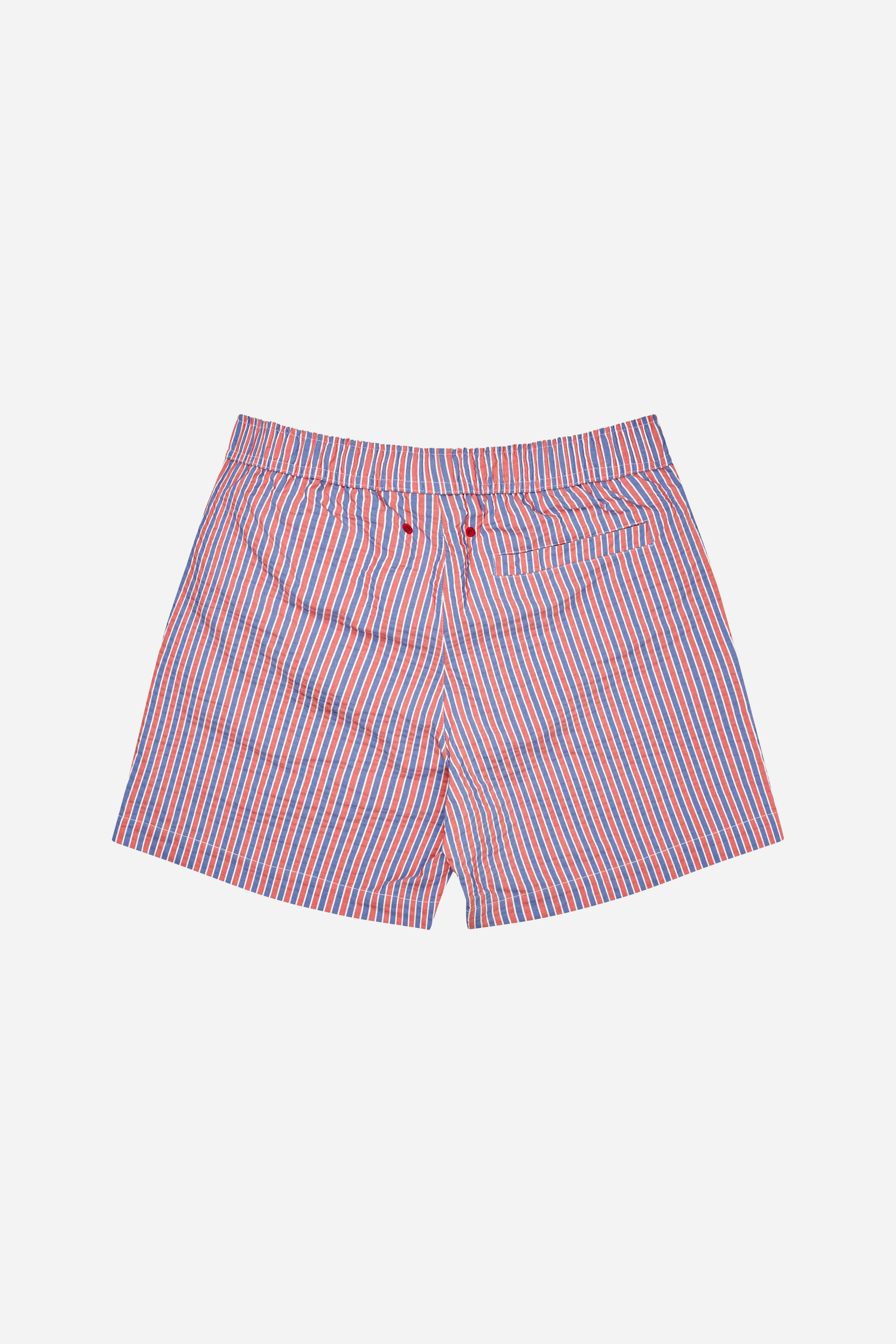 Red And Blue Swim Trunks fra Fichi. Disse badebukser er fremstillet i en SEAQUAL® polyester og bomuldsblanding. De er designet med korte ben, elastik og snøre i taljen, sidelommer og en baglomme på højre side. Badebukserne har et Fichi logo broderet på venstre side fortil.