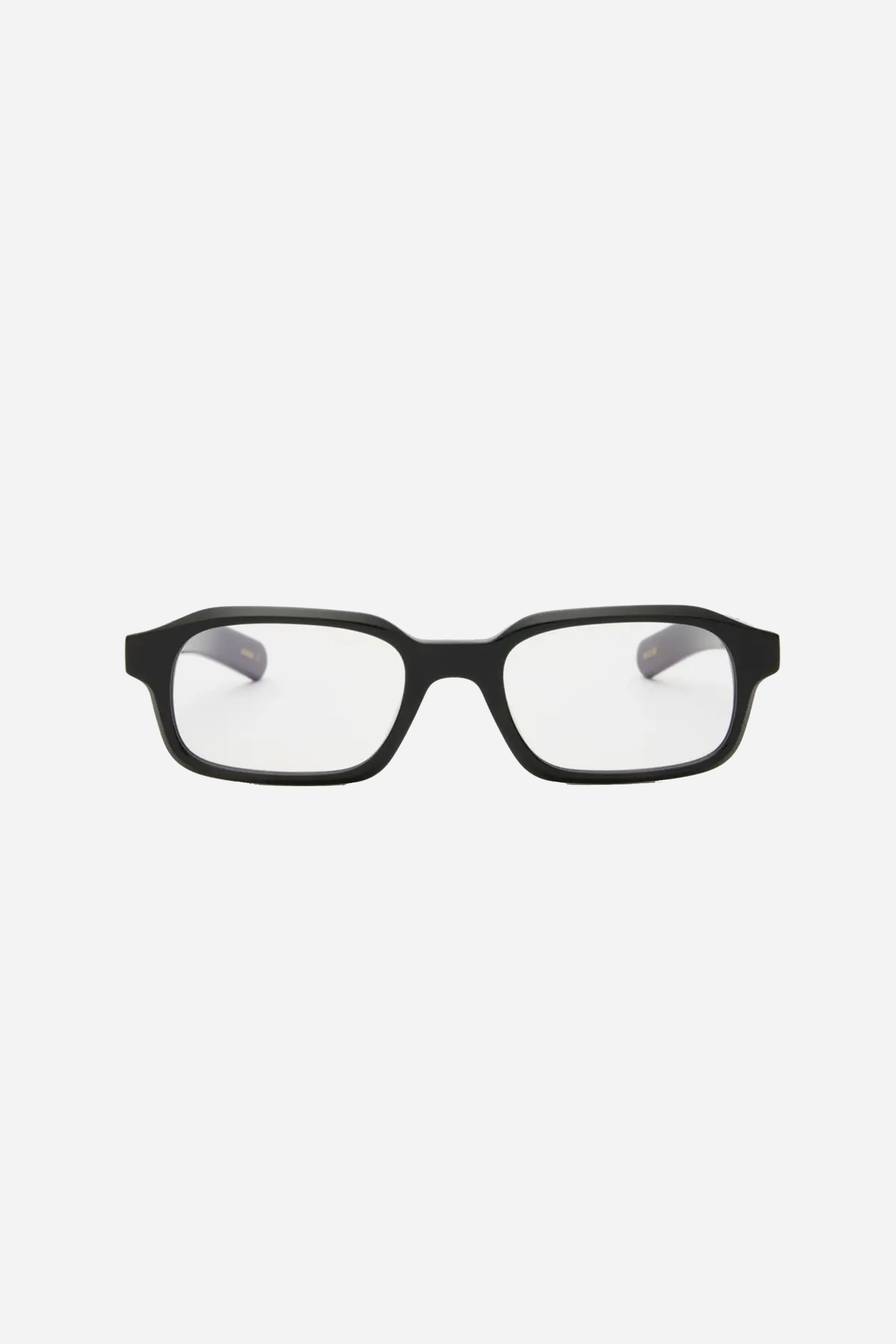 Hanky Solid Black/Clear Lens Blue Light fra Flatlist Eyewear. Brillerne er fremstillet i håndlavet acetat. De har ridsefrit glas med 100% UVA/UVB beskyttelse og leveres i en æske med etui og mikrofiberklud.