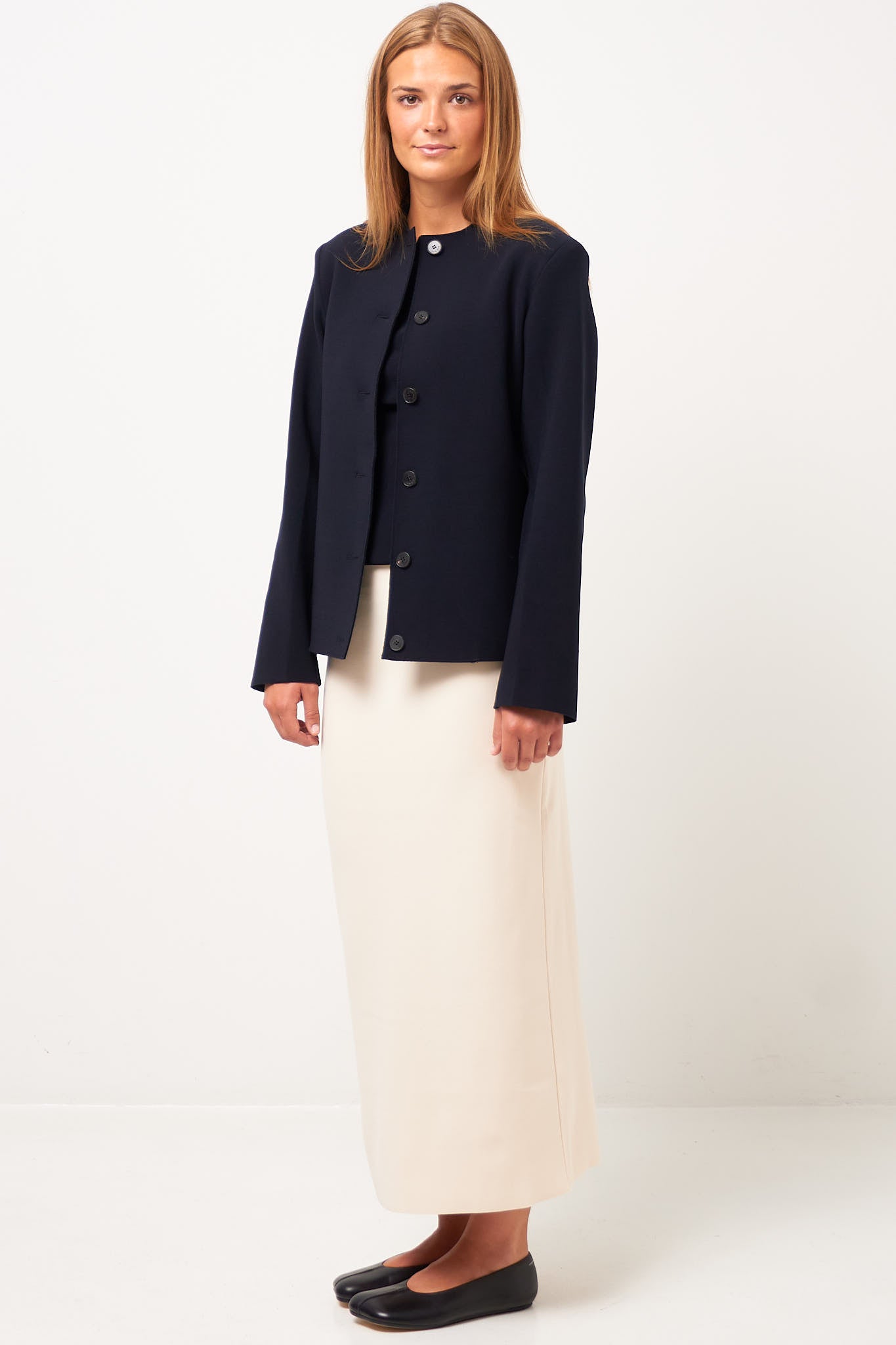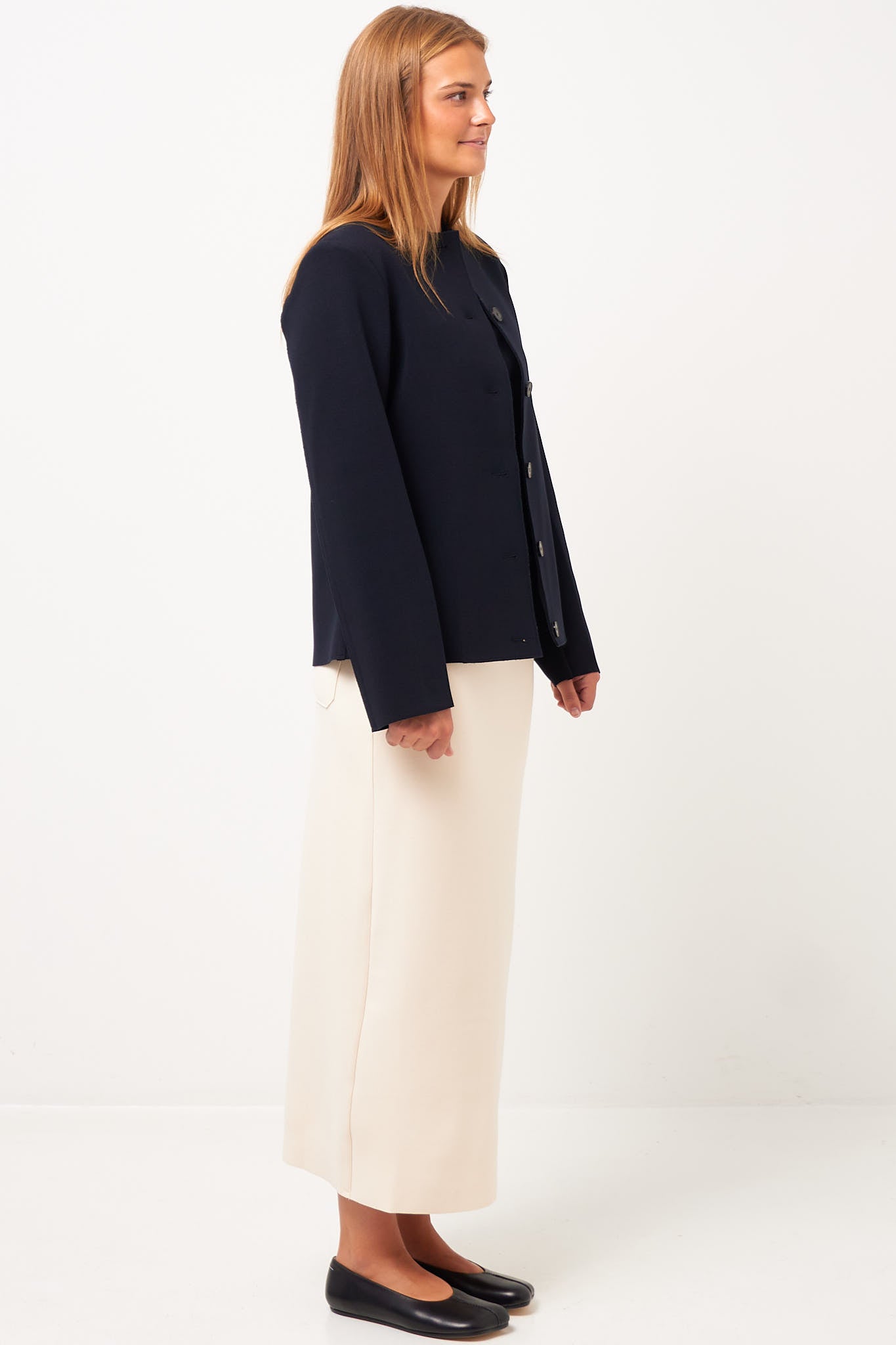 Lay3 Blazer Ink fra BIRROT. Denne jakke er fremstillet i en kraftig polyesterblanding. Den har en normal siddende pasform, med en rund halsudskæring. Jakken har usynlige sidelommer, og lukkes med knapper fortil.