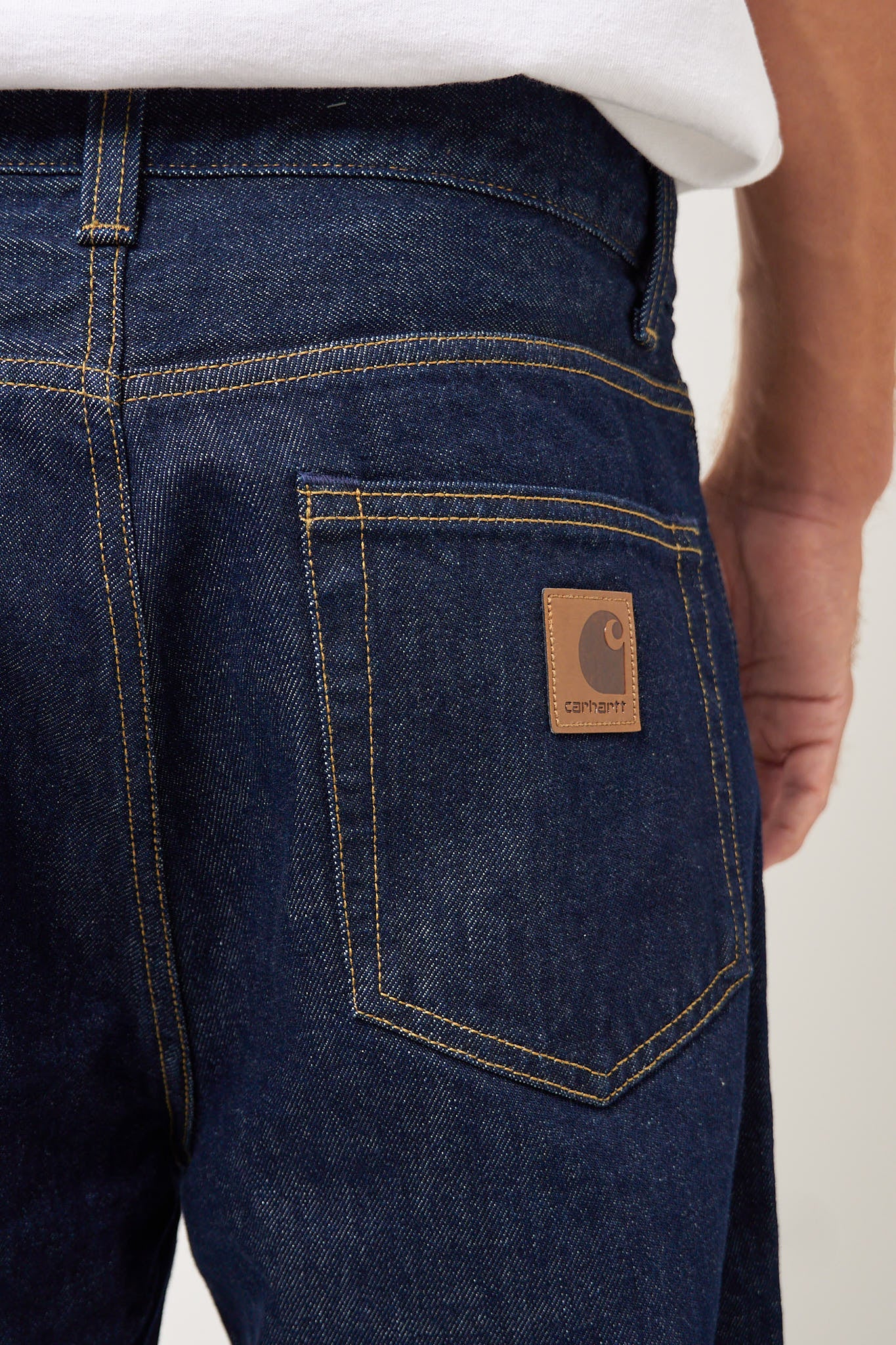 Aaron Pant Blue Rinsed fra Carhartt WIP. Disse jeans er fremstillet i en rå denim. De er designet i en normal, ligebenet pasform med 5 lommer og bæltestropper. Disse jeans lukkes med lynlås og knap fortil, og har et Carhartt WIP logo påsyet på højre baglomme.