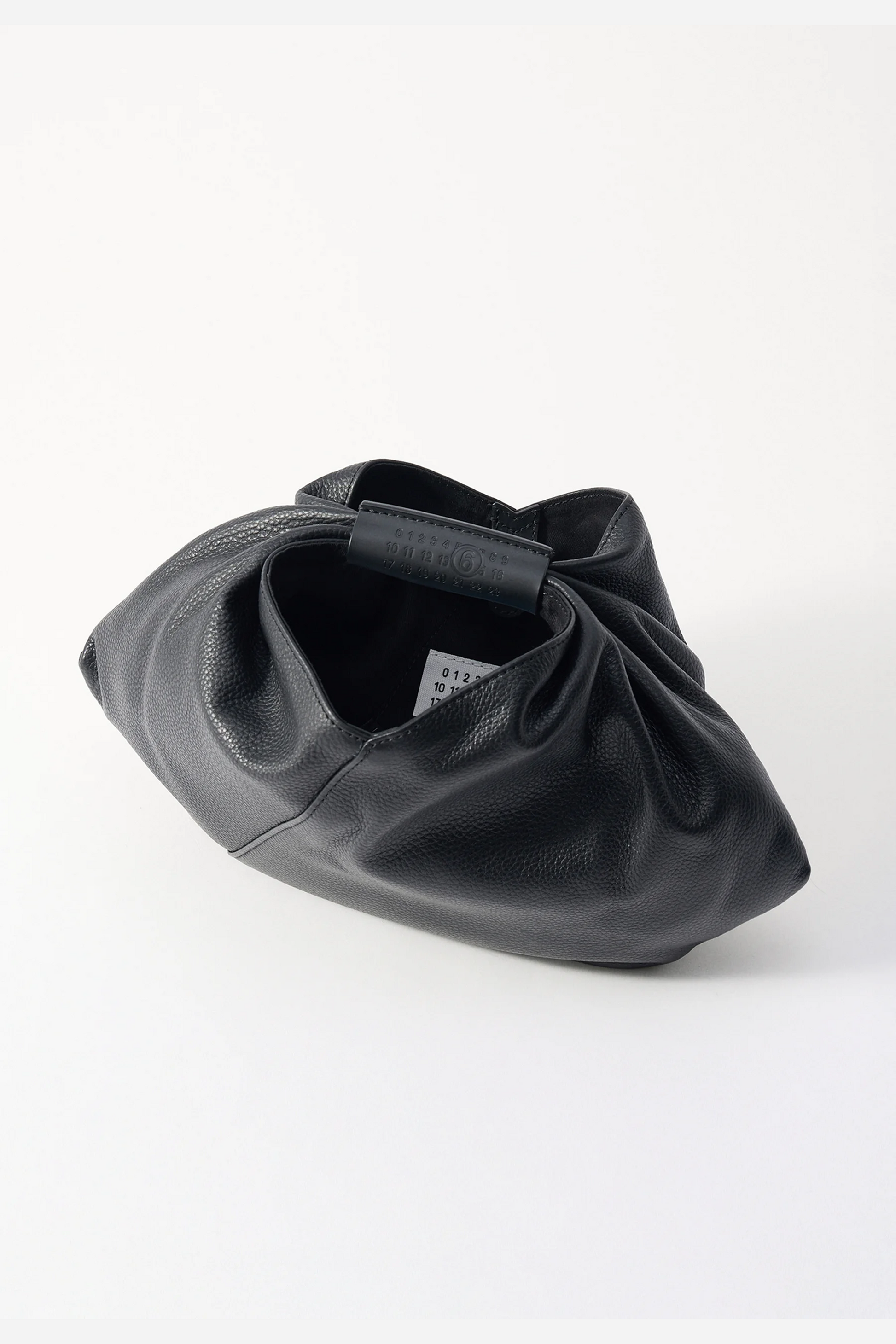 Japanese Draped Mini Bag Black fra MM6 Maison Margiela. Denne taske er fremstillet i læder. Den har et draperet design med folder i begge sider. Den er designet med et håndtag der har et MM6 Maison Margiela logo. Tasken lukkes med magnet, og har en MM6 Maison Margiela logo syning på den ene side.