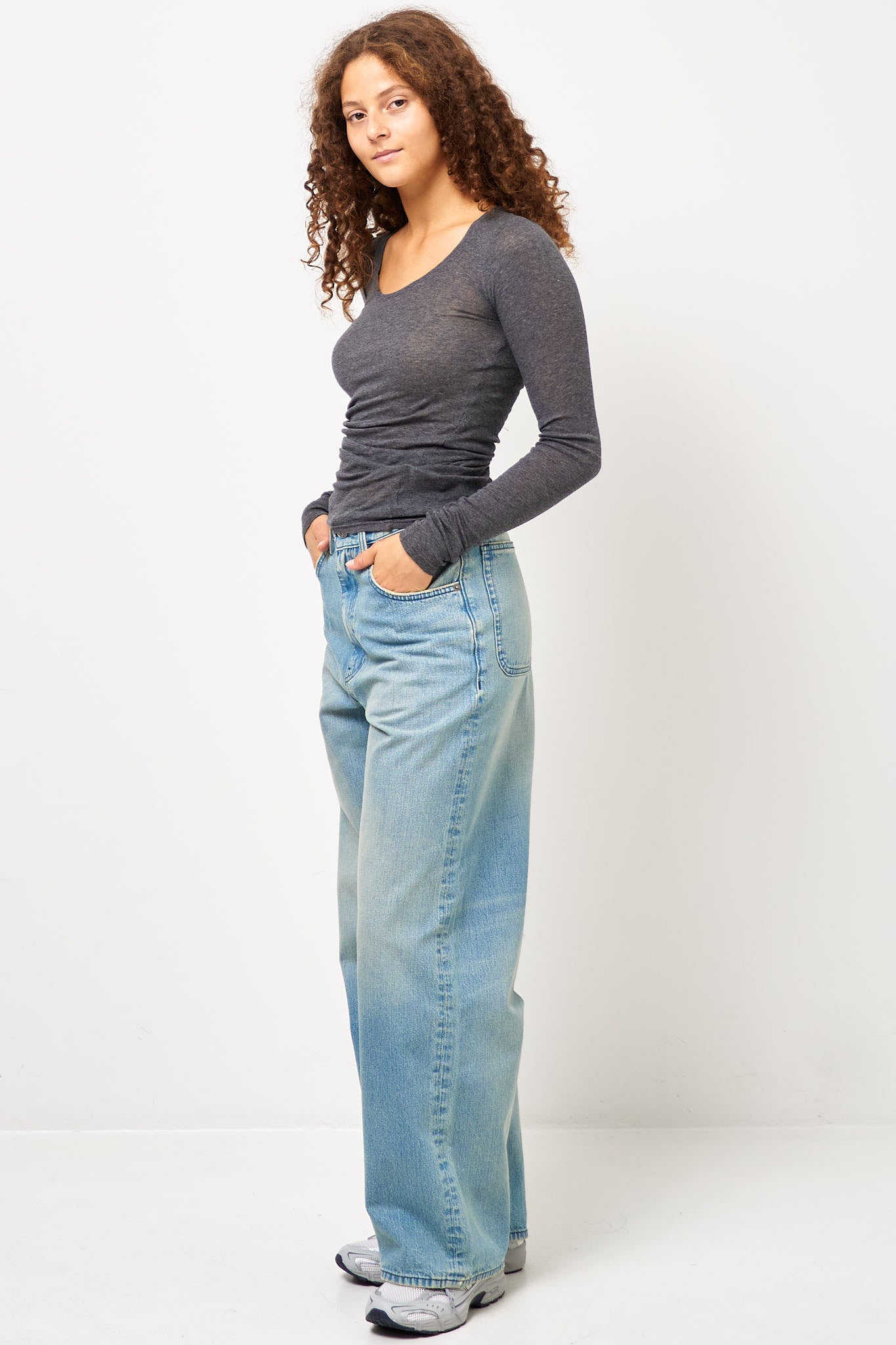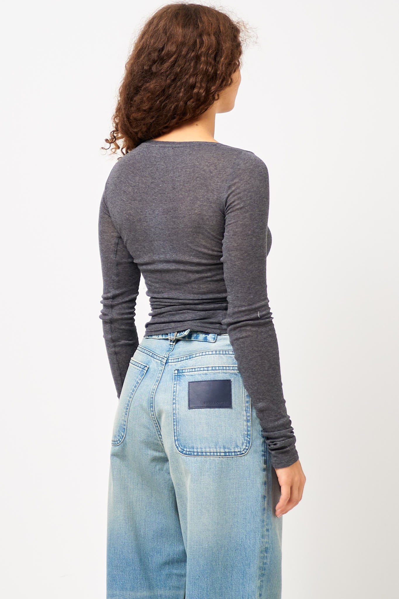 Massachusetts LS T-shirt Charcoal Melange fra American Vintage. Denne top er fremstillet i bomuld. Den er designet med en dyb rund halsudskæring, lange ærmer og har en tætsiddende pasform.