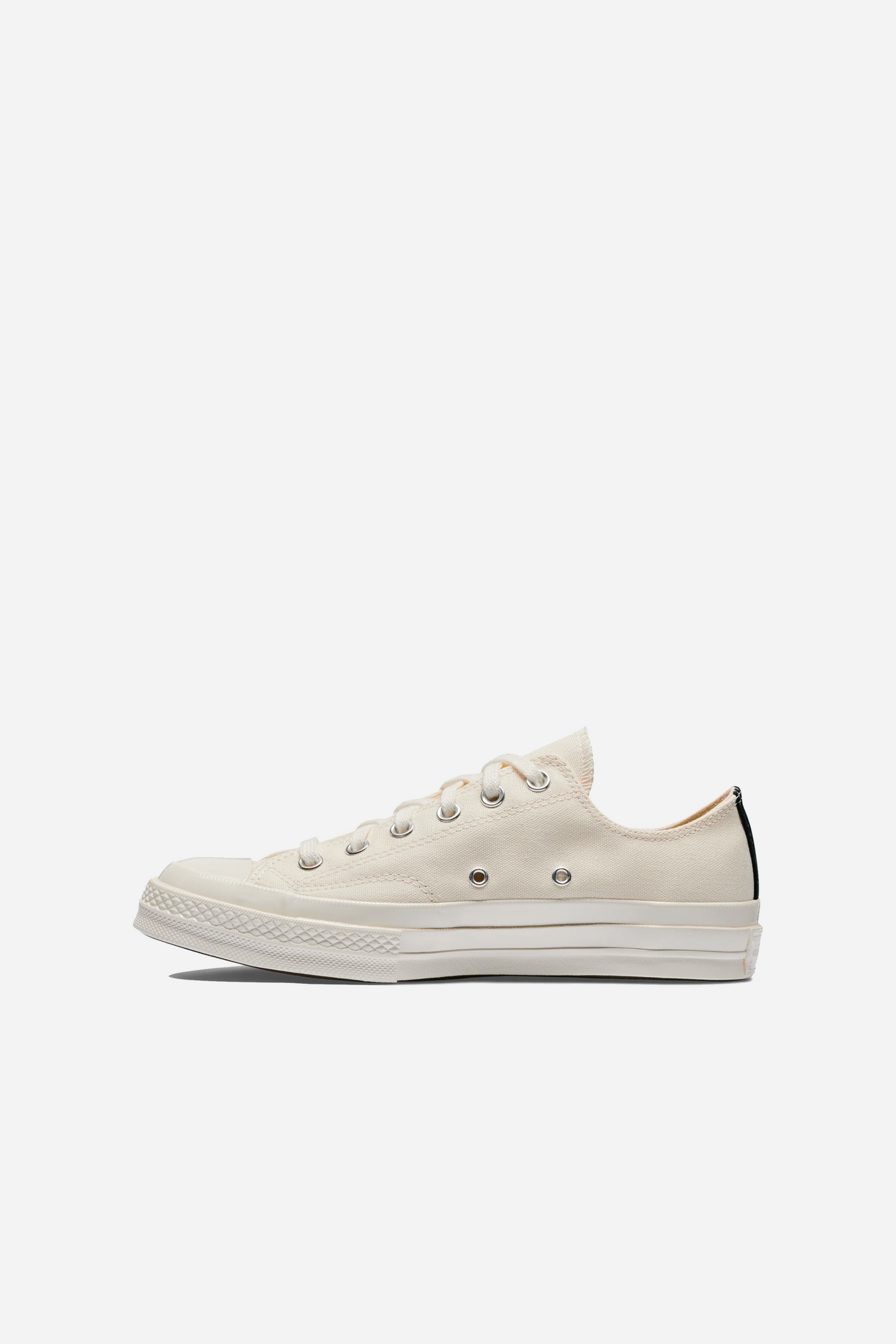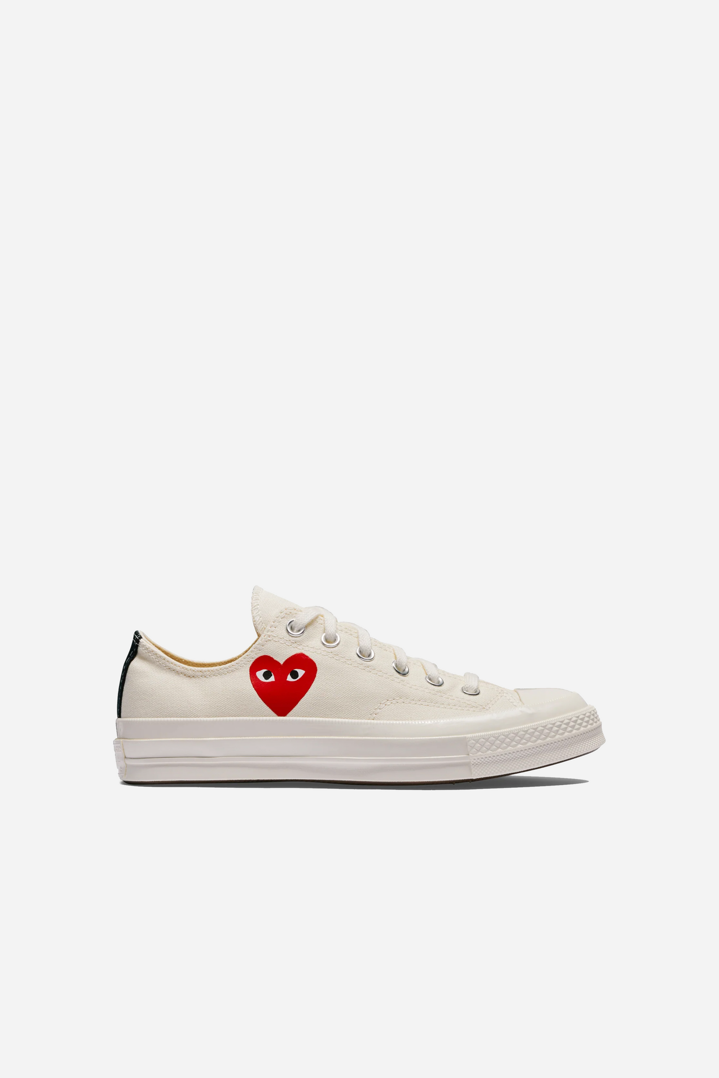 Converse Small Red Heart Low Beige fra Comme Des Garçons Play. Disse sneakers er fremstillet med en overdel i lærred. Ydersålen og tåkappe er i gummi. De er designet med signaturhjertet i rødt.