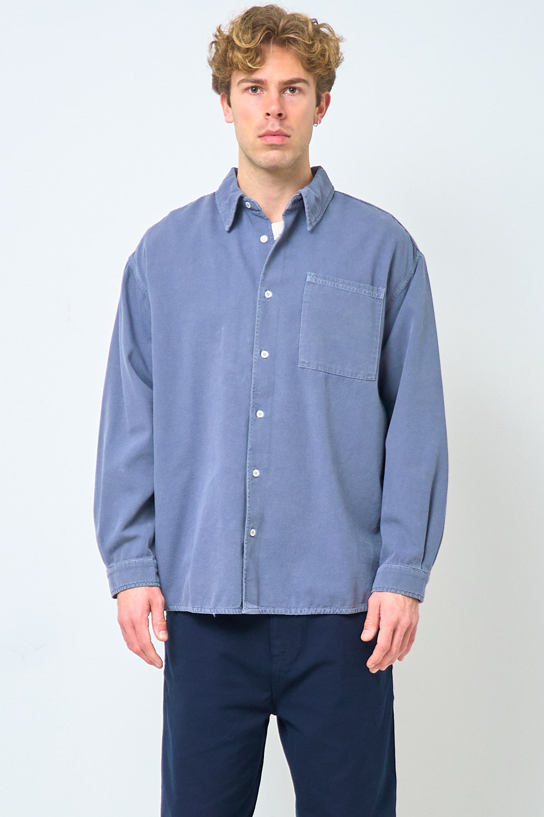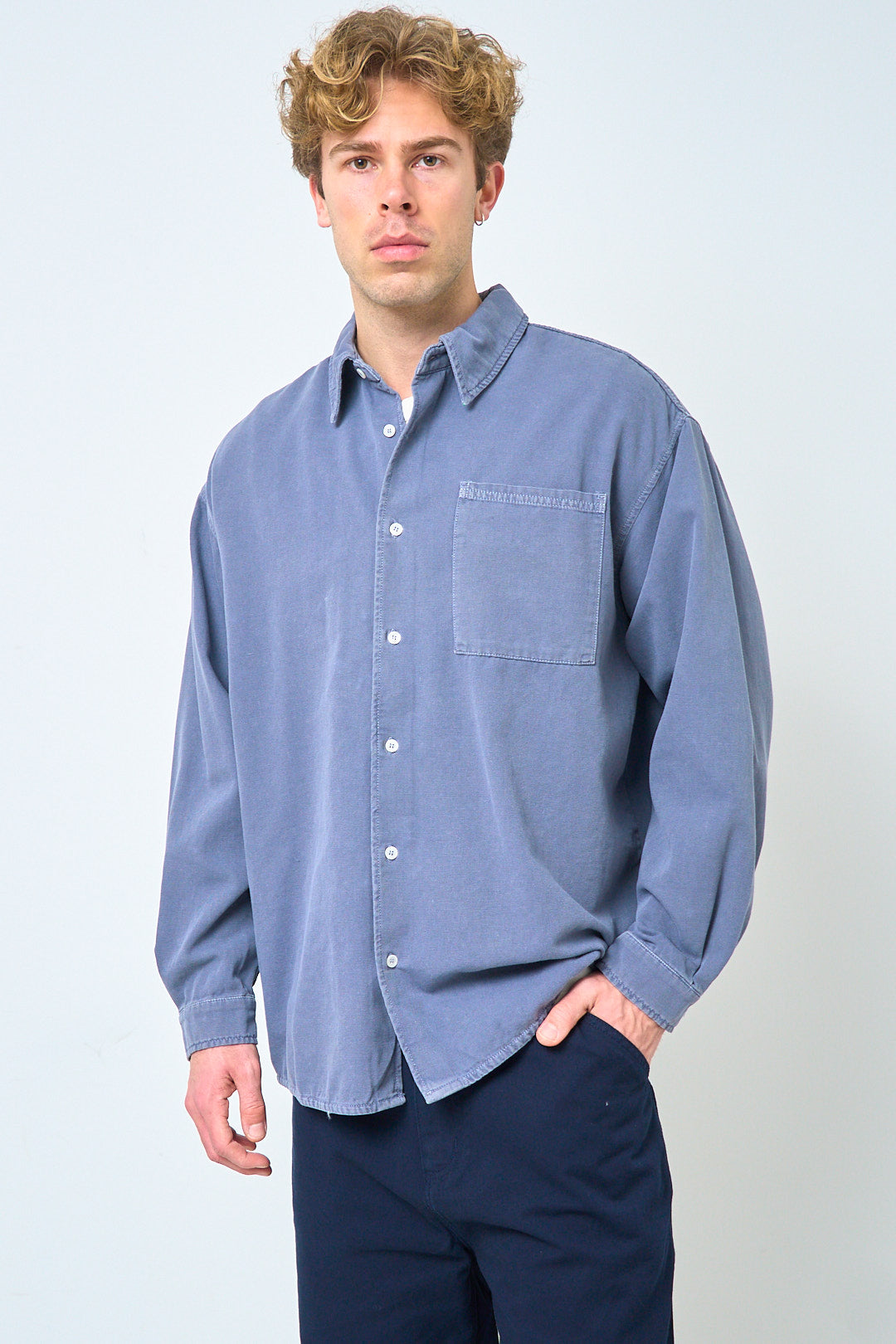 Lycaz Shirt Storm fra American Vintage. Denne skjorte er fremstillet i en kraftig bomuld. Den er designet med en afslappet pasform, krave og manchetter. Skjorten lukkes med knapper fortil, har en lomme på venstre bryst, og et påsyet American Vintage logo på bagsiden.