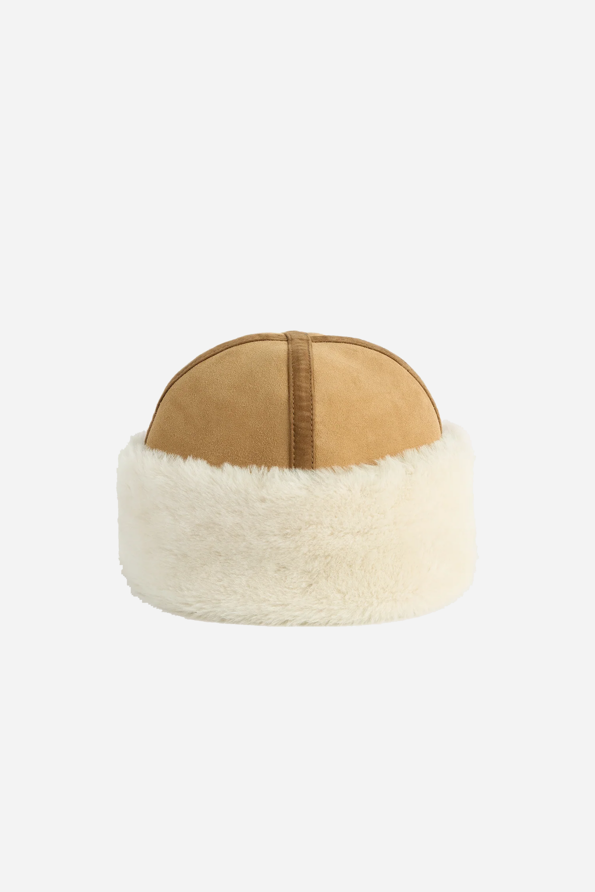 Shearling Winter Hat Tan fra TOTEME. Denne hat er fremstillet i lammelæder. Den er designet med en bred plysset kant.