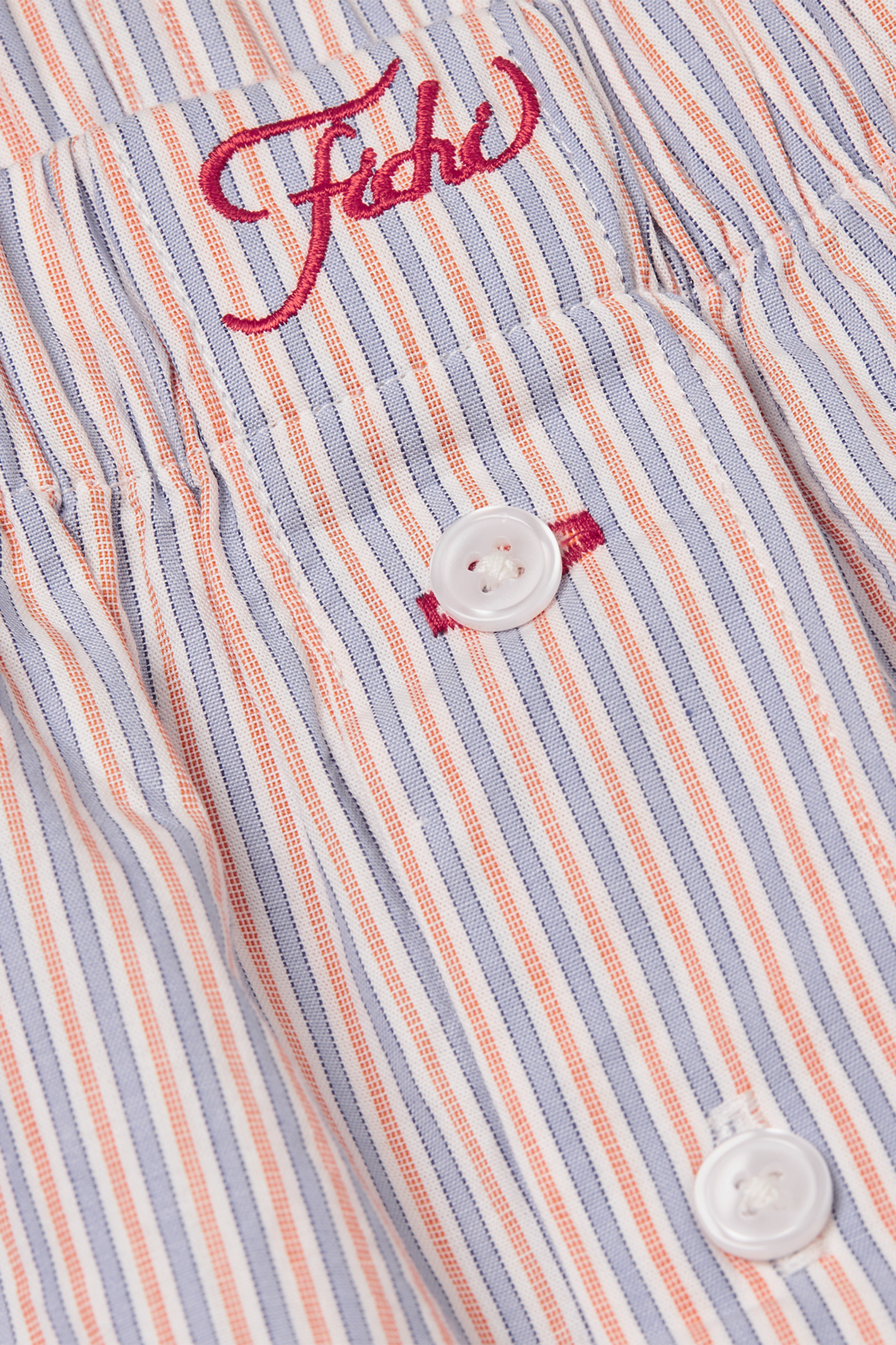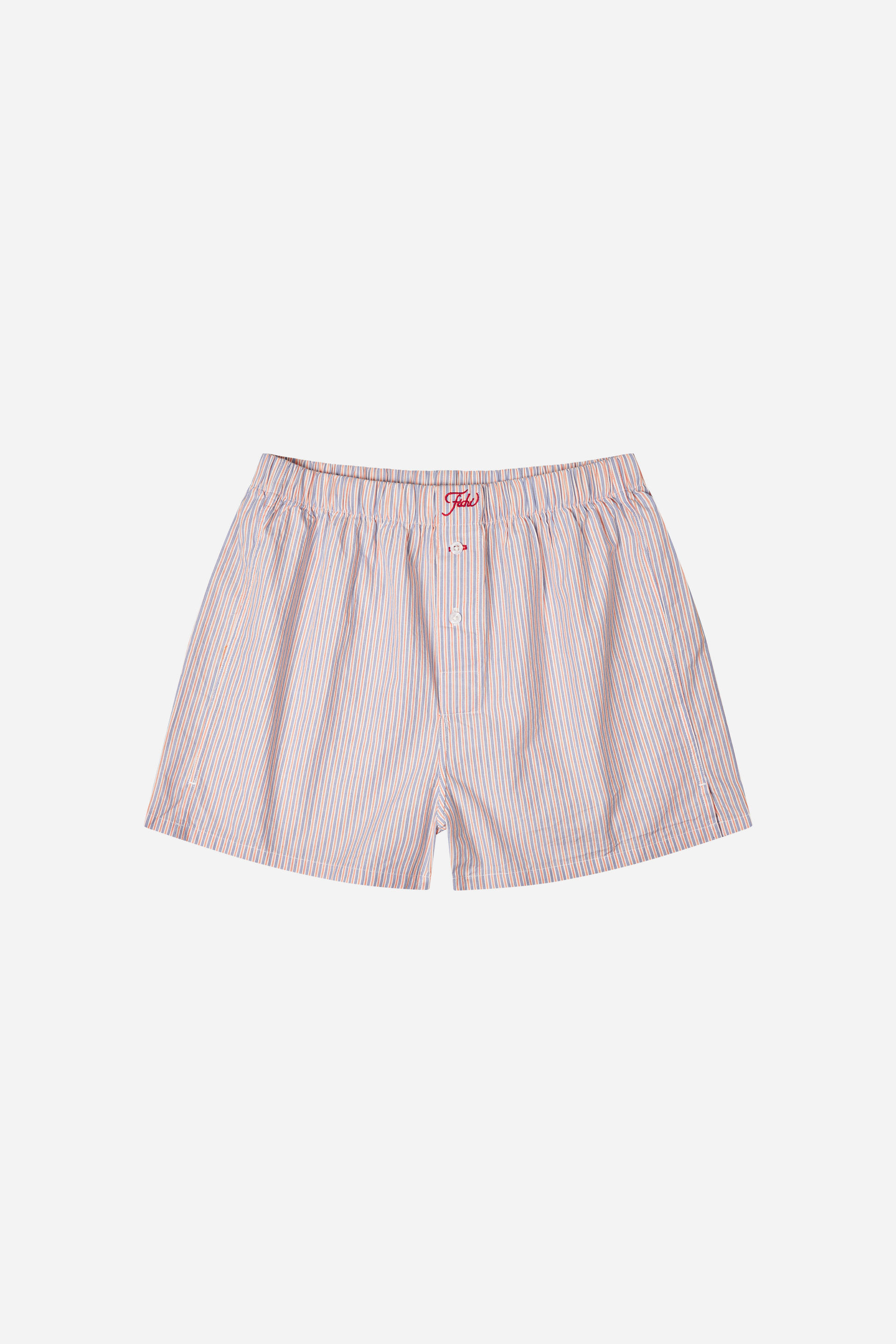 Honey And Sky Stripe Boxers fra Fichi. Disse boxershorts er fremstillet i bomuld. De er designet med elastik i livet og knapper fortil. Disse underbukser har et broderet Fichi logo fortil. Underbukserne kommer i en pose i samme metervare.