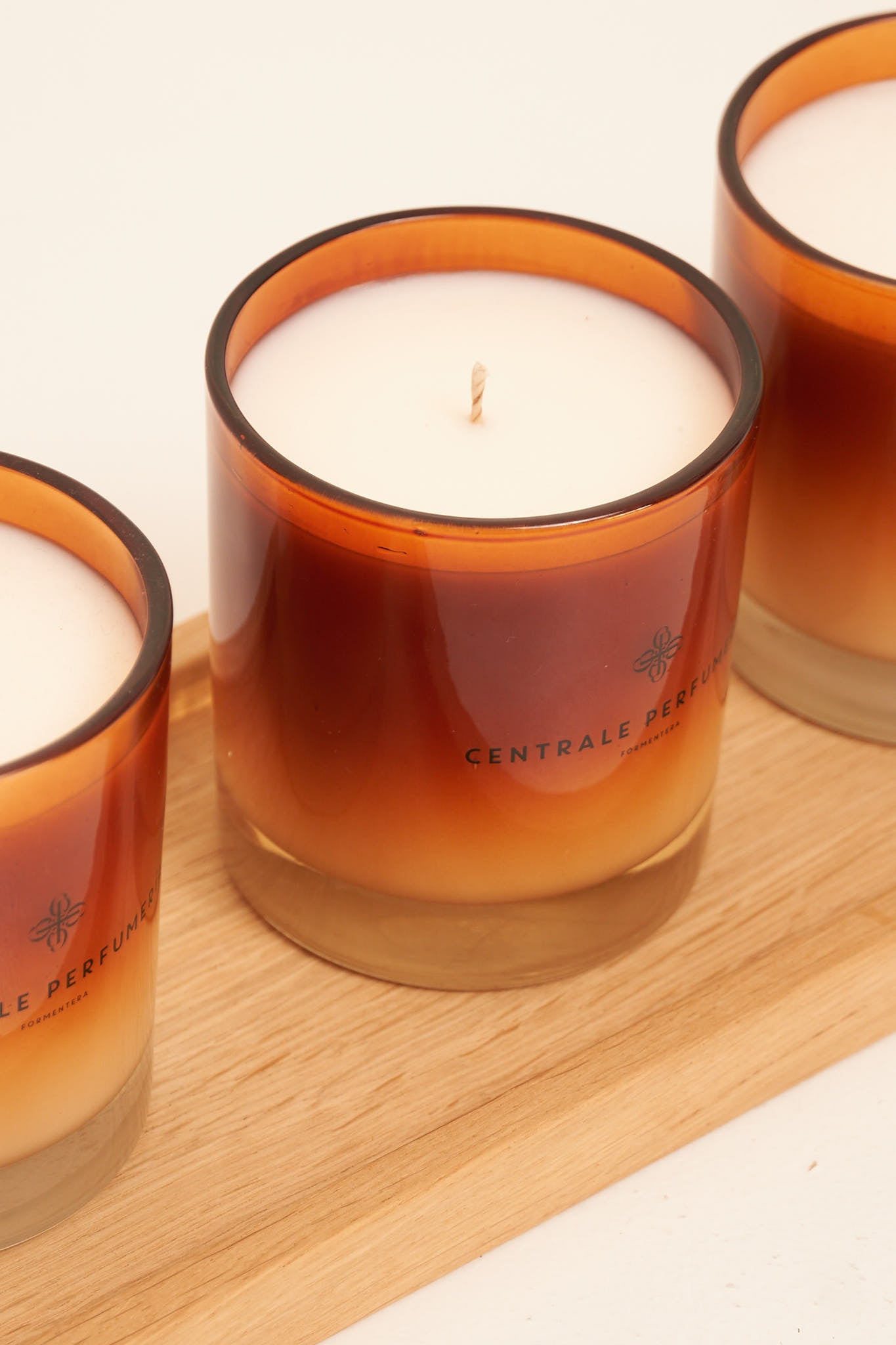 Aire Fresco De Ses Salines fra Centrale Perfumería Formentera. Duftlyset kommer i en orange glaskrukke og indeholder 240g. Lyset har duftnoter af Figenblade, citron og orris.