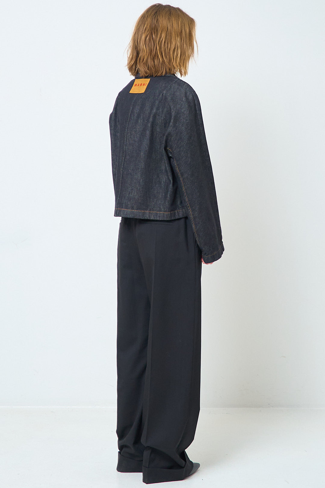 Black Denim Jacket With Daisies fra Marni. Denne jakke er fremstillet i en kraftig bomulds denim. Jakken er designet med en kort pasform, lange ærmer, sidelommer lommer fortil, og en krave med påsyet blomster rundt. Jakken har et påsyet Marni logo i nakken, og lukkes med knapper fortil.