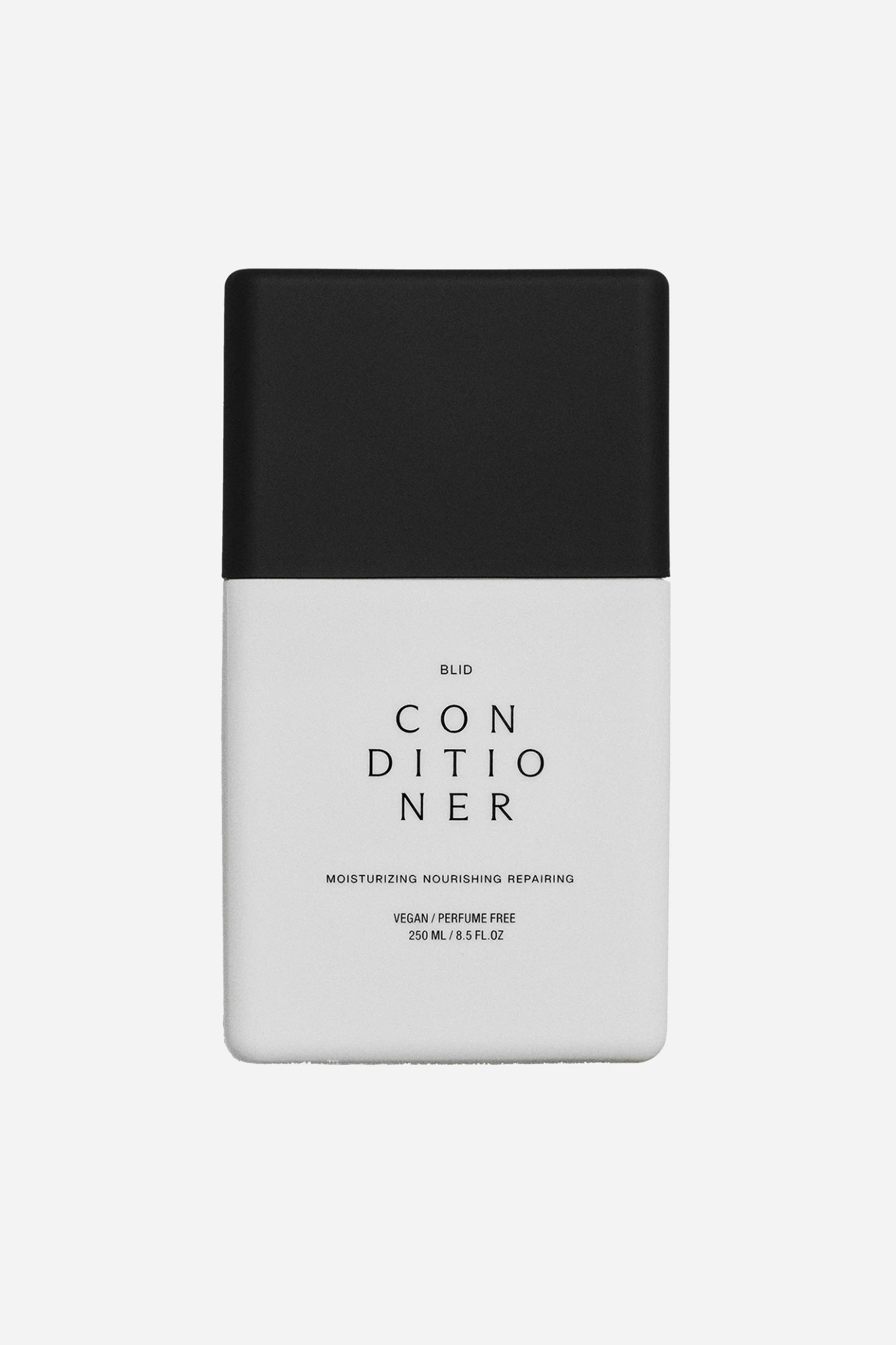 BLID Conditioner fra BLID Care. Denne conditioner er parfumefri, vegansk og allergi-certificeret. Den indeholder ingredienser af Simmondsia Chinensis frøolie og forskellige hydrolyserede proteiner der nærer og styrker håret.