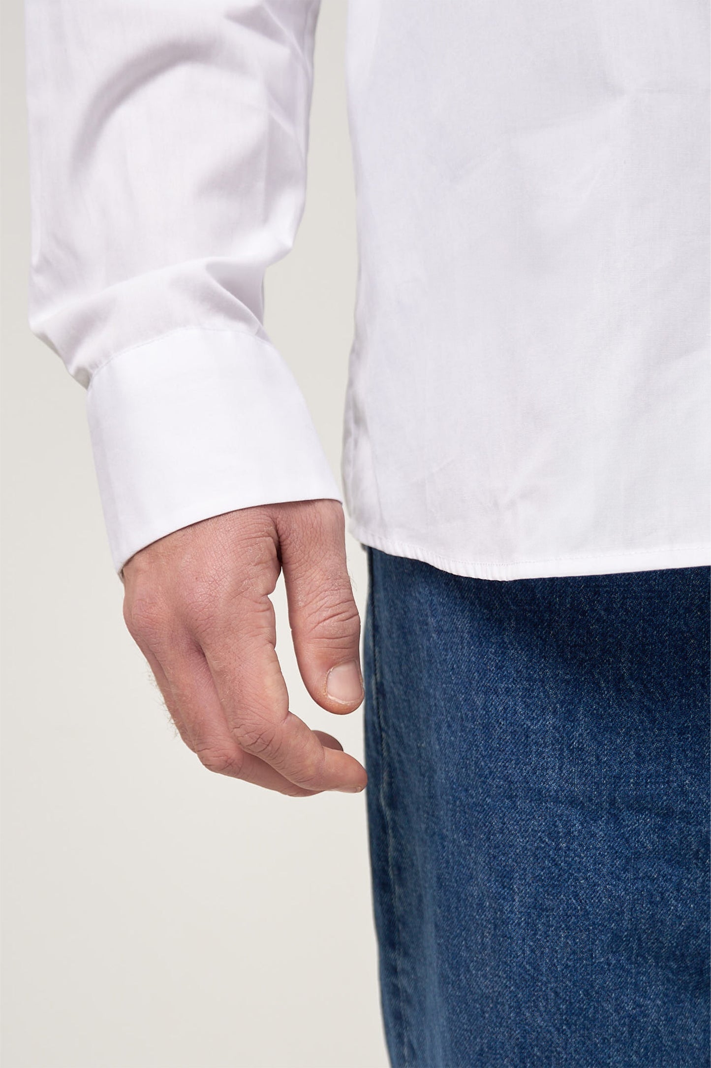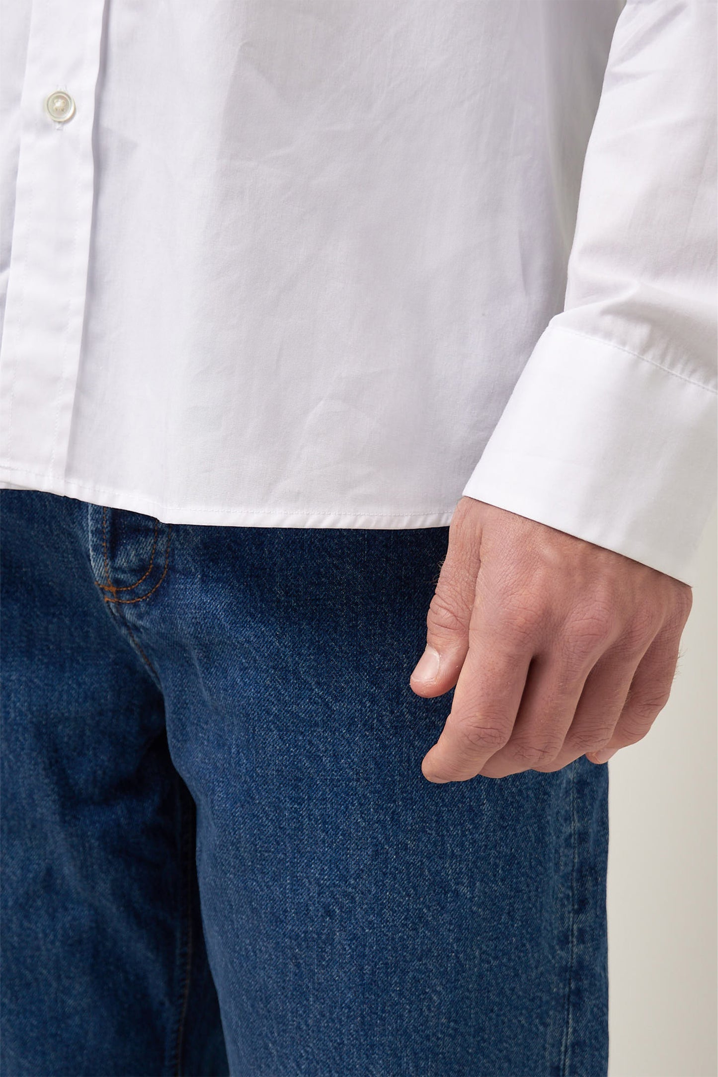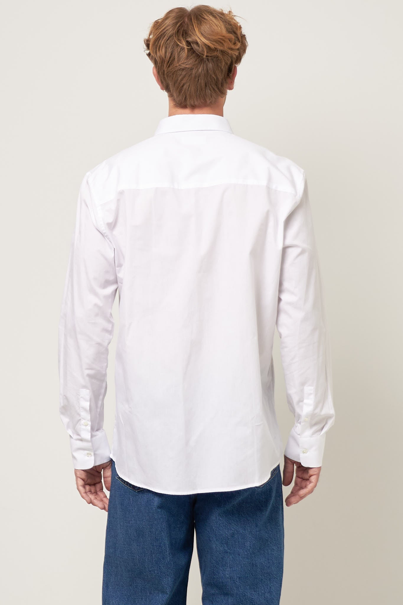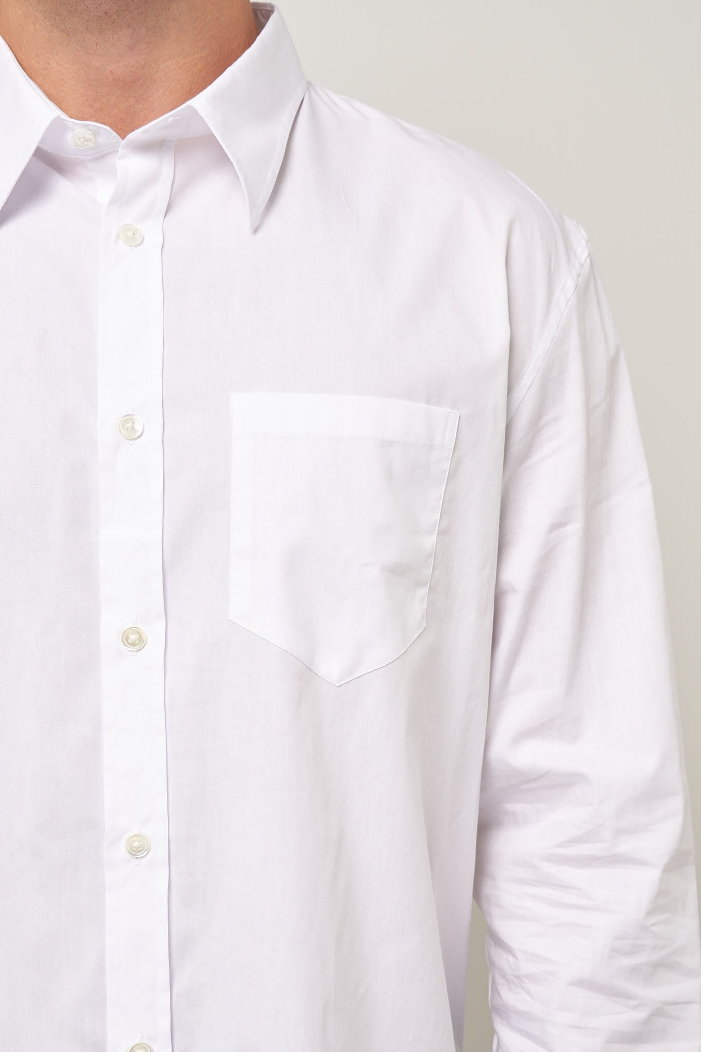 Brook Shirt Solid White fra STRØM. Denne skjorte har en almindelig pasform. Den er fremstillet i økologisk bomuld og er designet med en klassisk skjortekrave, manchetter med knapper, og en enkelt brystlomme i venstre side. Skjorten har en synlig knaplukning med knapper i perlemor.