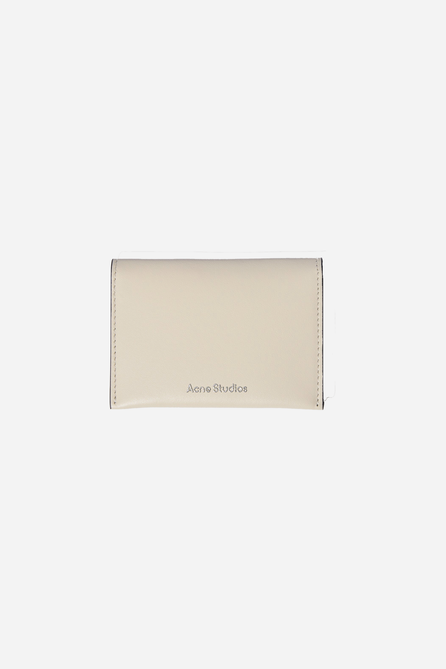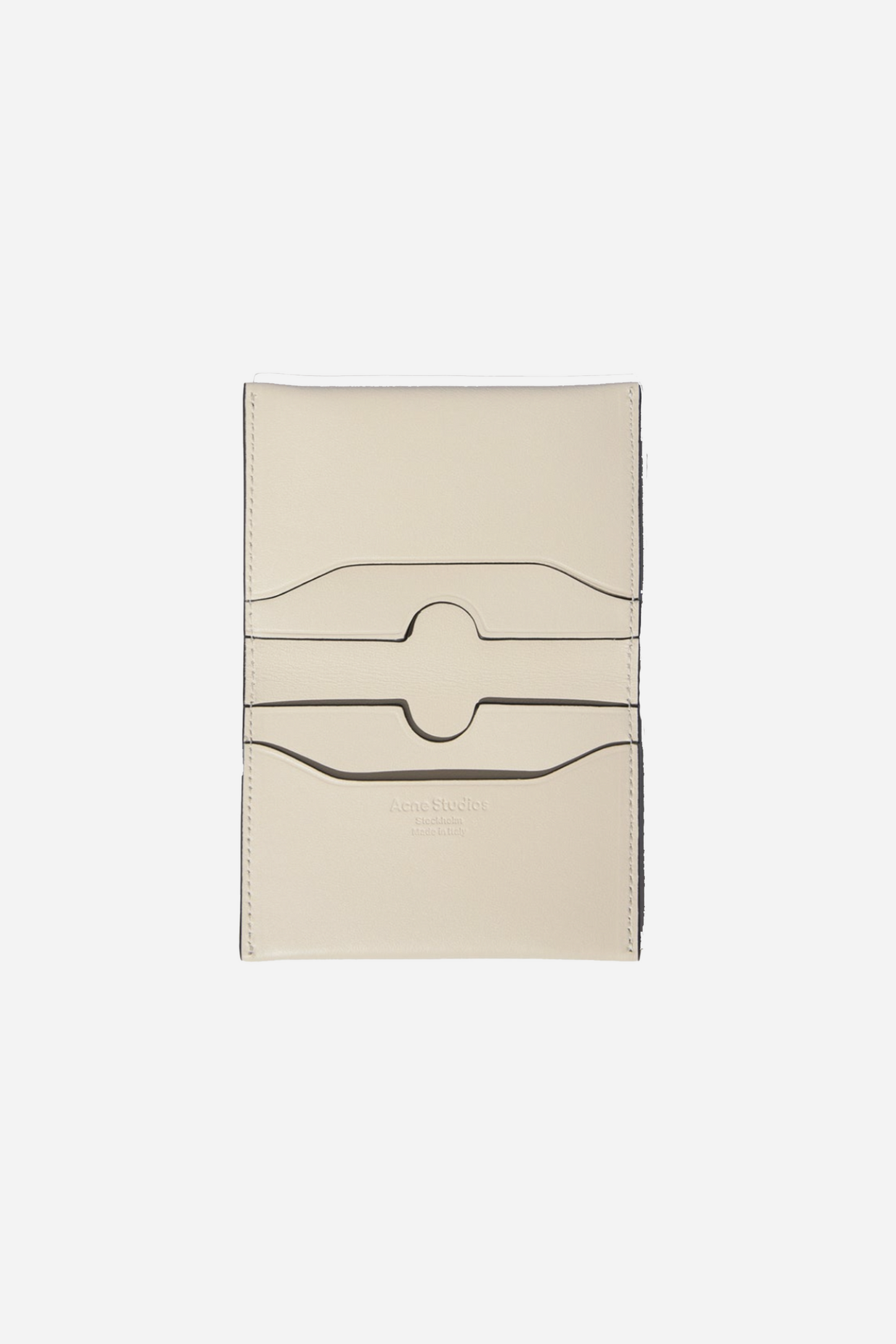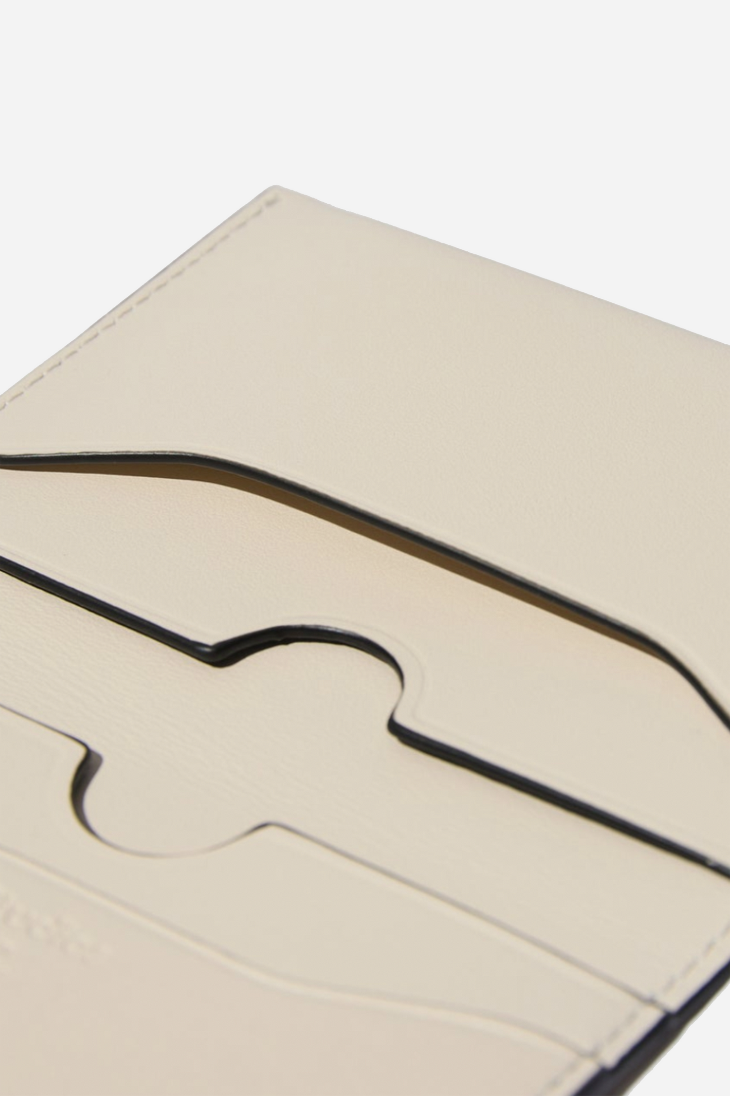 Folded Leather Wallet White/Black fra Acne Studios. Denne kortholder er fremstillet i blødt kernelæder med plads til minimum 4 kort og et sølvfarvet 3D Acne Studios logo trykt på forsiden.