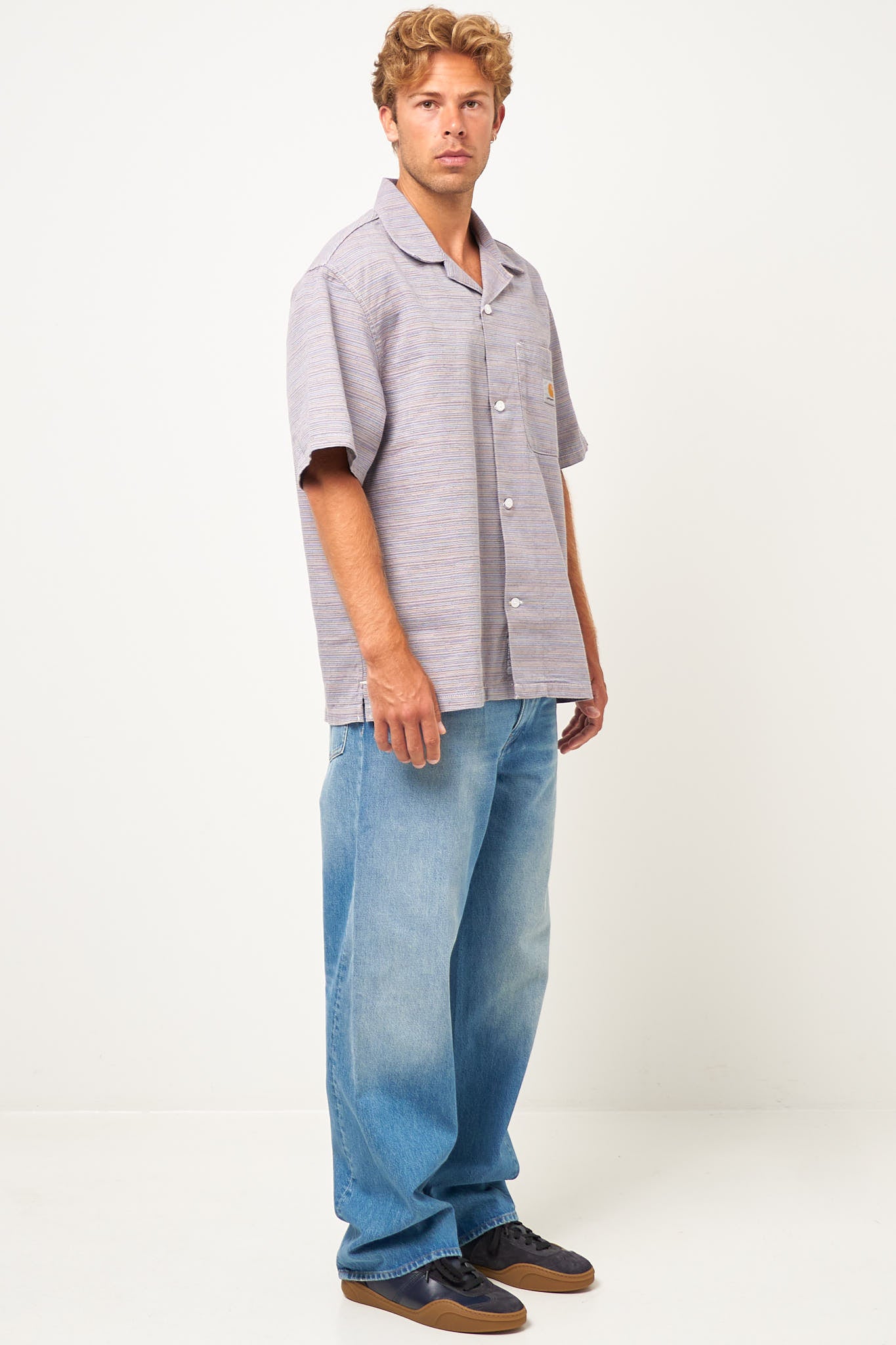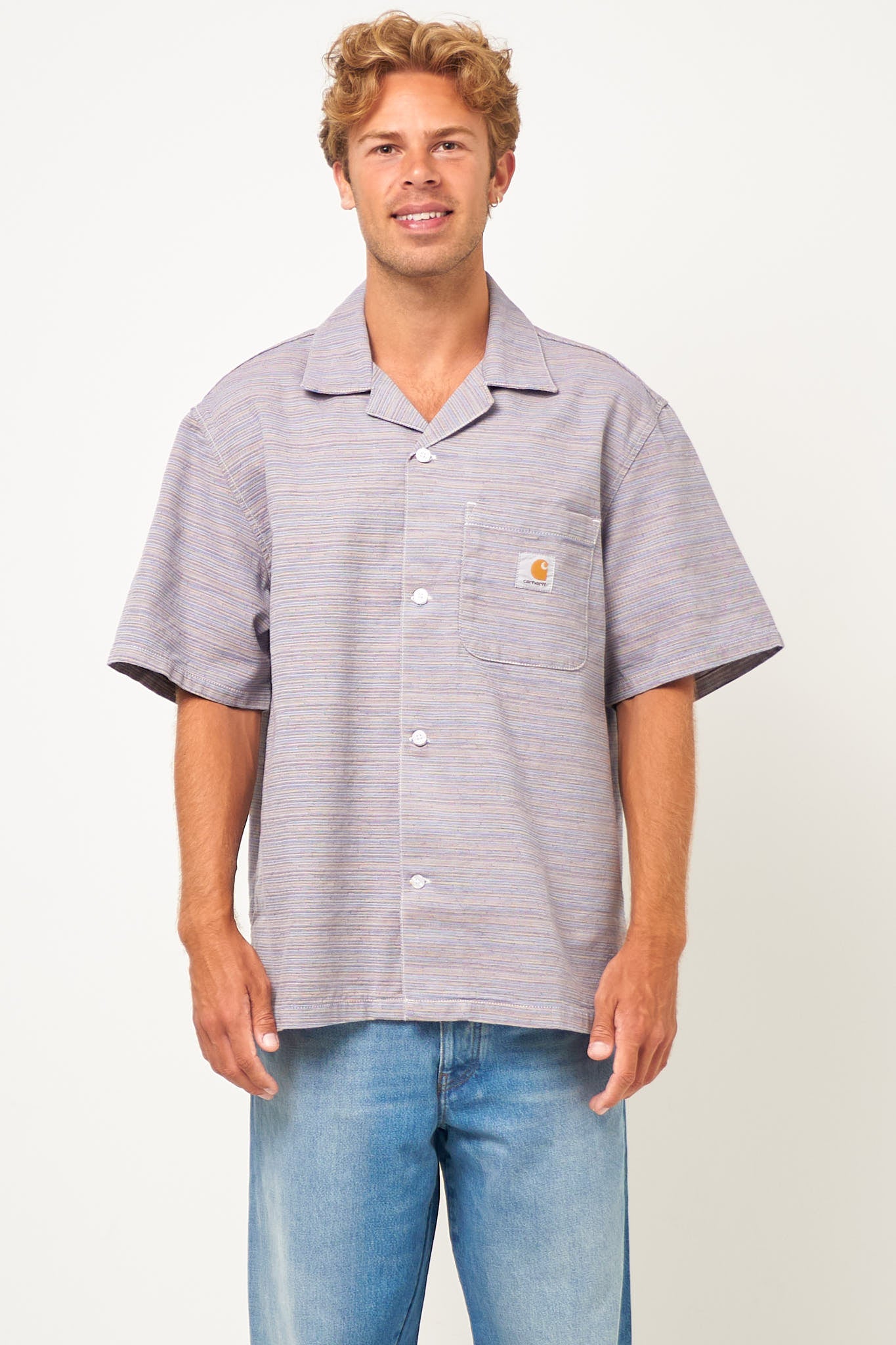 Gellar Shirt Stripe fra Carhartt WIP. Denne skjorte er fremstillet i kraftig bomuld. Den har en normal pasform med et Carhartt WIP logo på brystlommen. Skjorten lukkes med knpper.