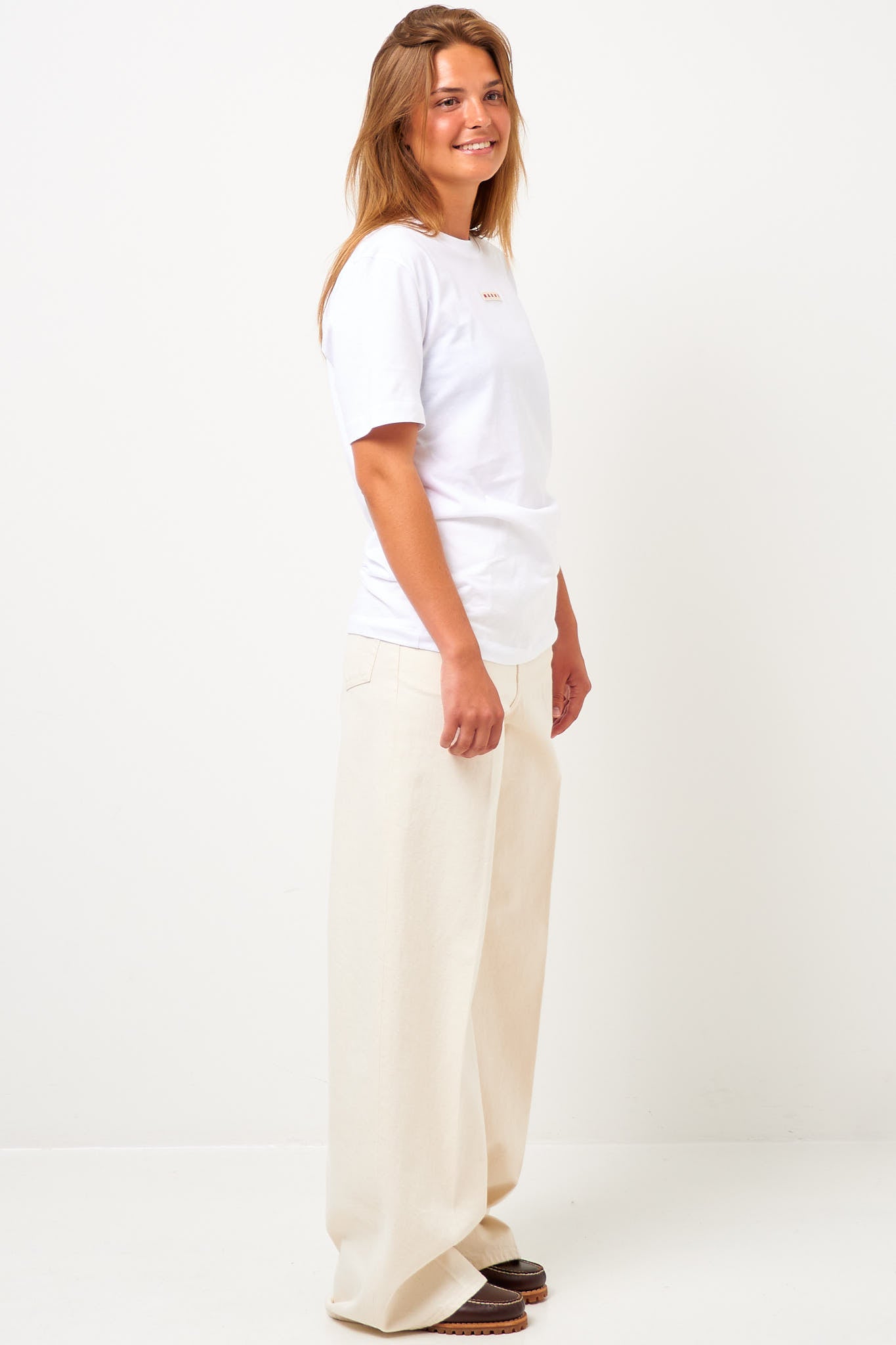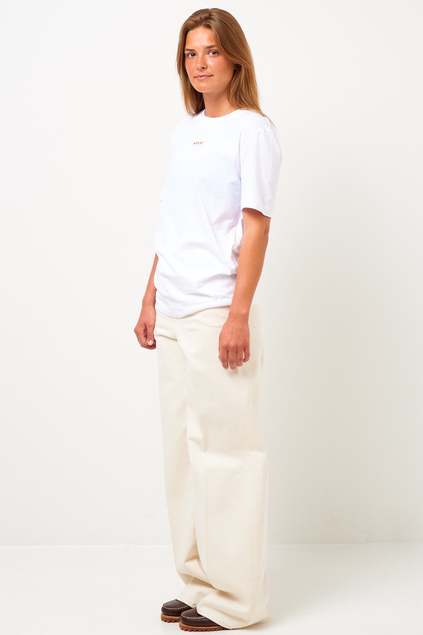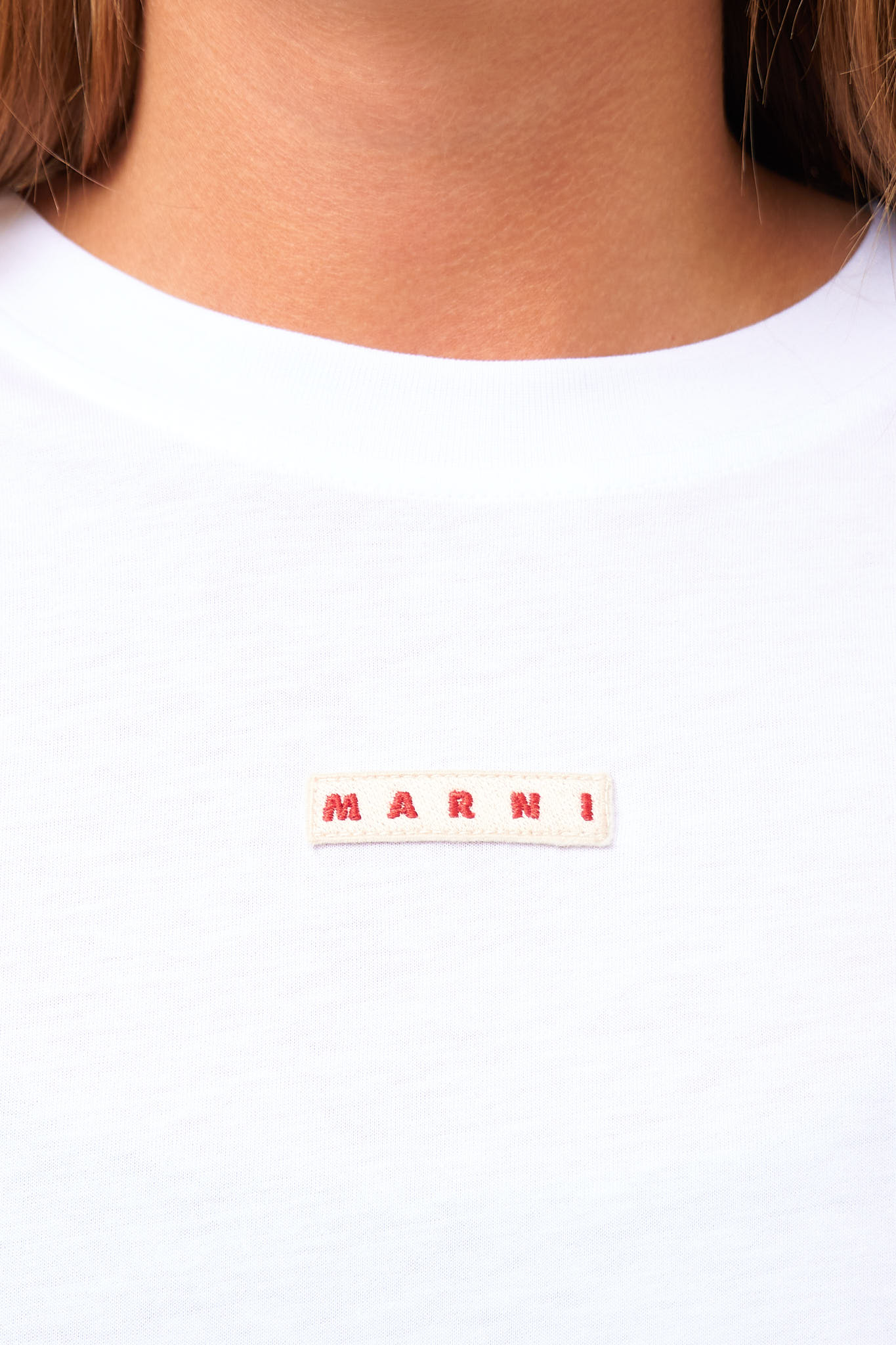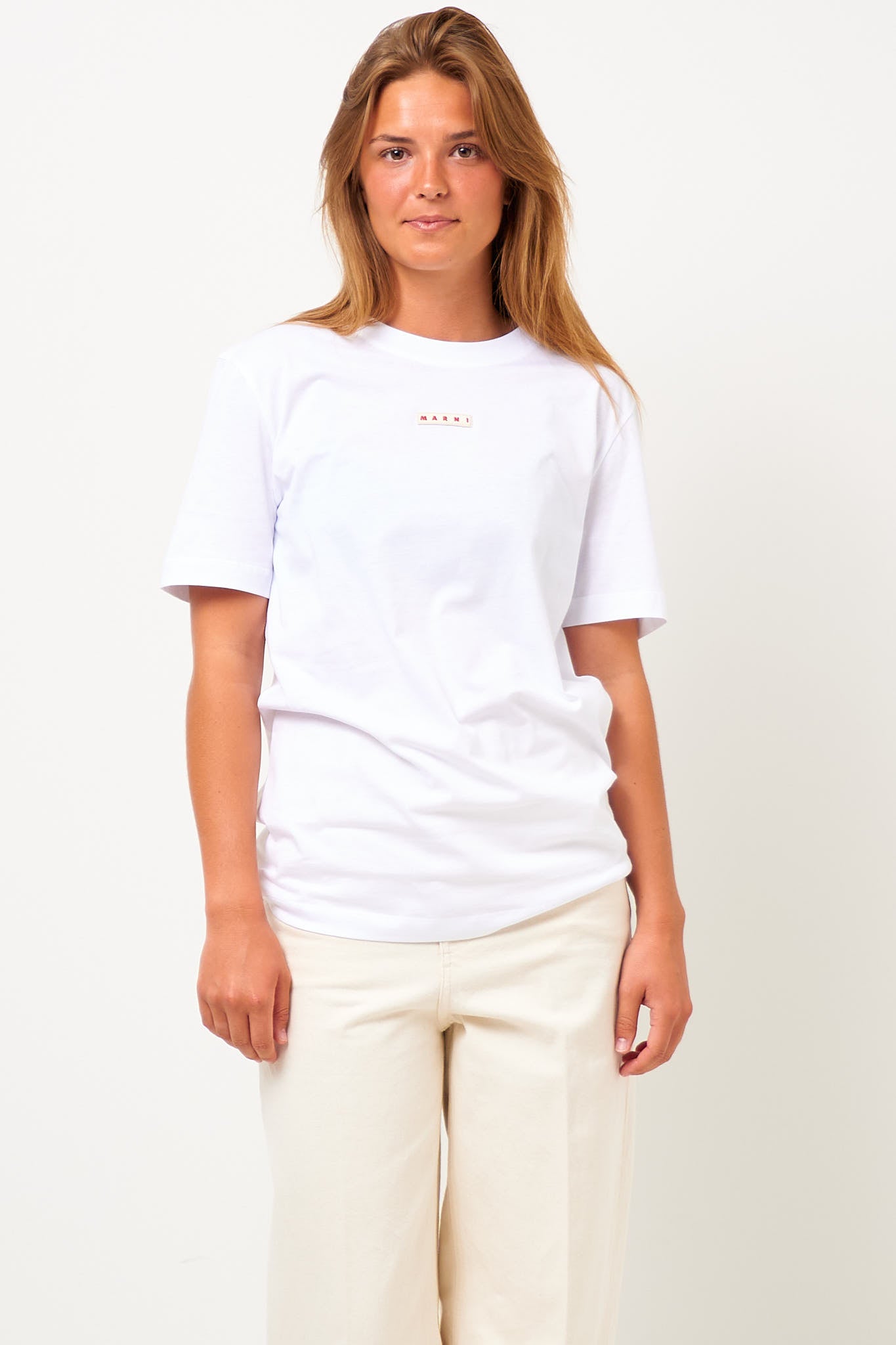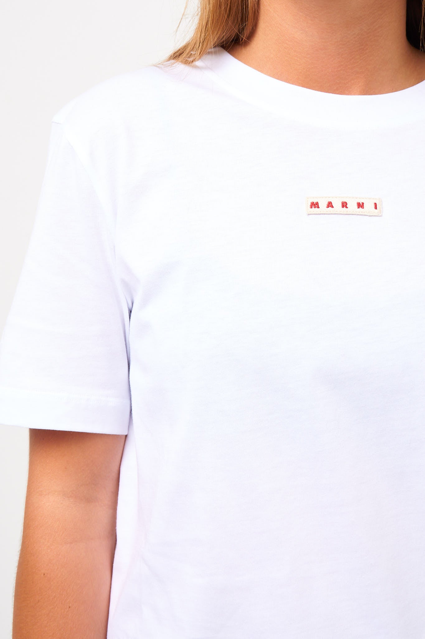 Label T-Shirt Lily White fra Marni. Denne t-shirt er fremstillet i en blød bomuld. Den har korte ærmer og rund halsudskæring. T-shirten er designet med et Marni logo label fortil.