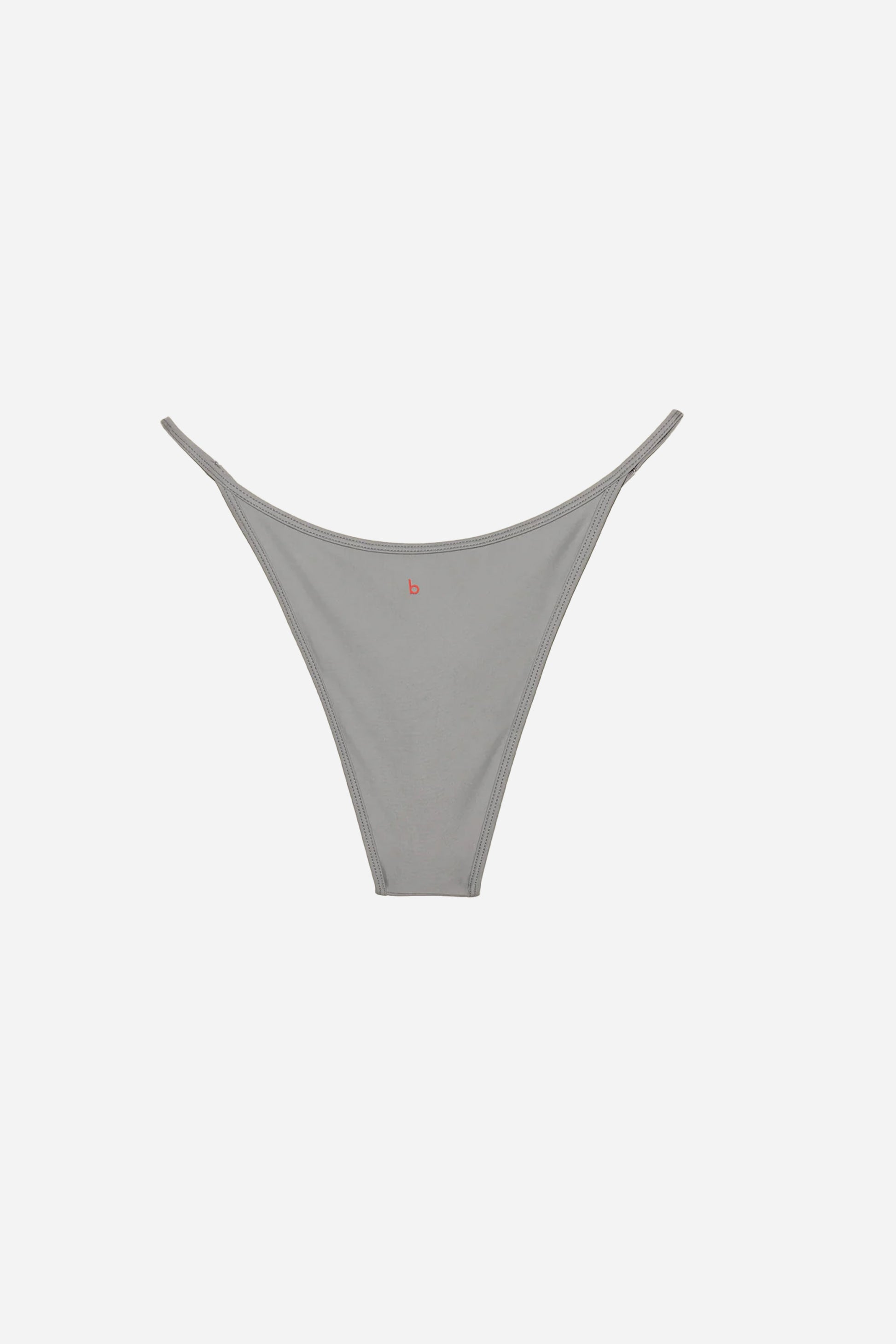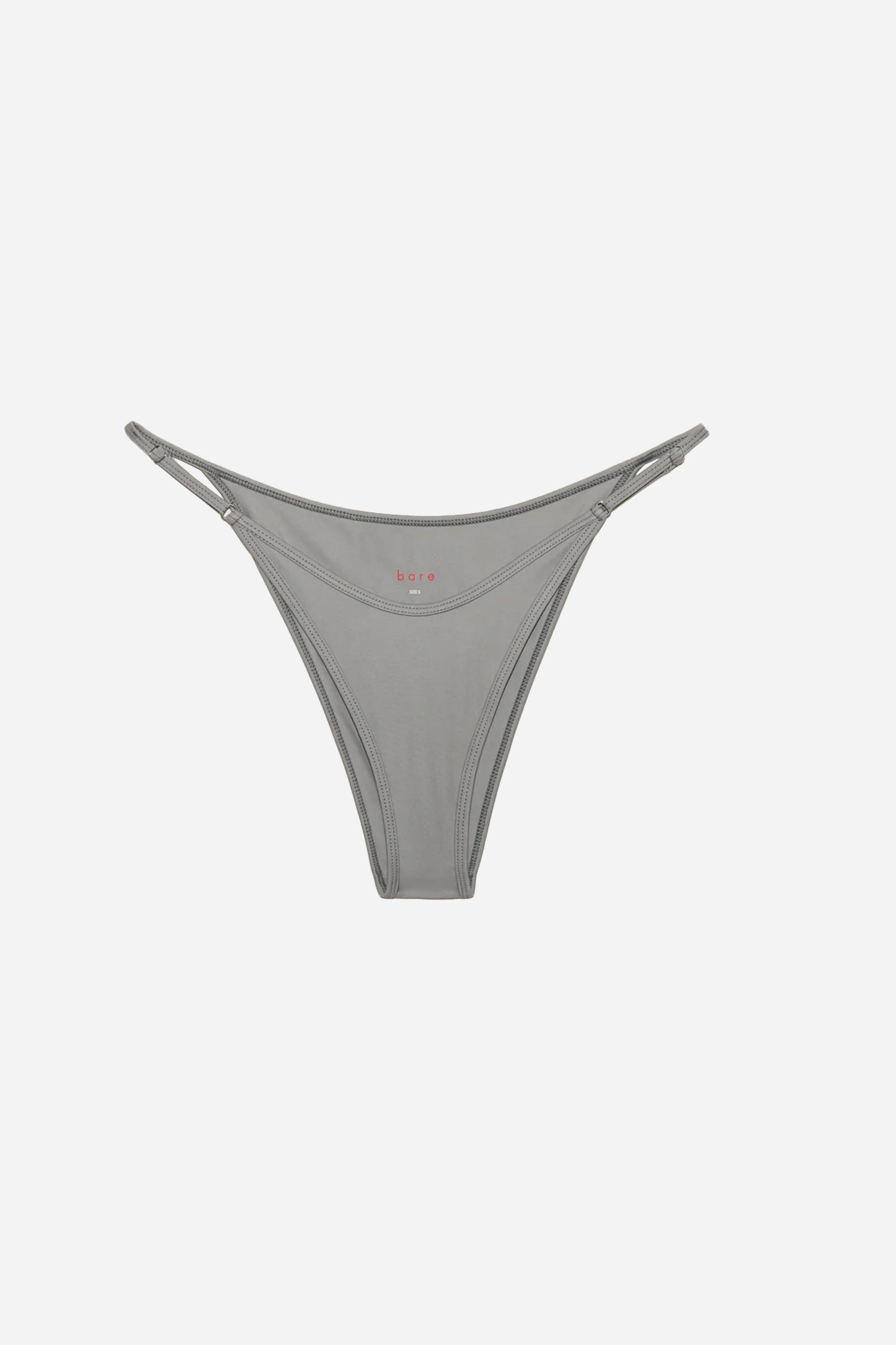 Liv Bottom Grey fra Bare Stockholm. Denne bikini underdel er fremstillet i ECONYL®. Materialet er ekstra modstandsdygtigt over for klor, solcreme og olie. Den har en mellem høj talje og er designet v-formet front. Pasformen er tætsiddende med justerbare stropper i siderne og har en Bare Stockholm logo bagpå.