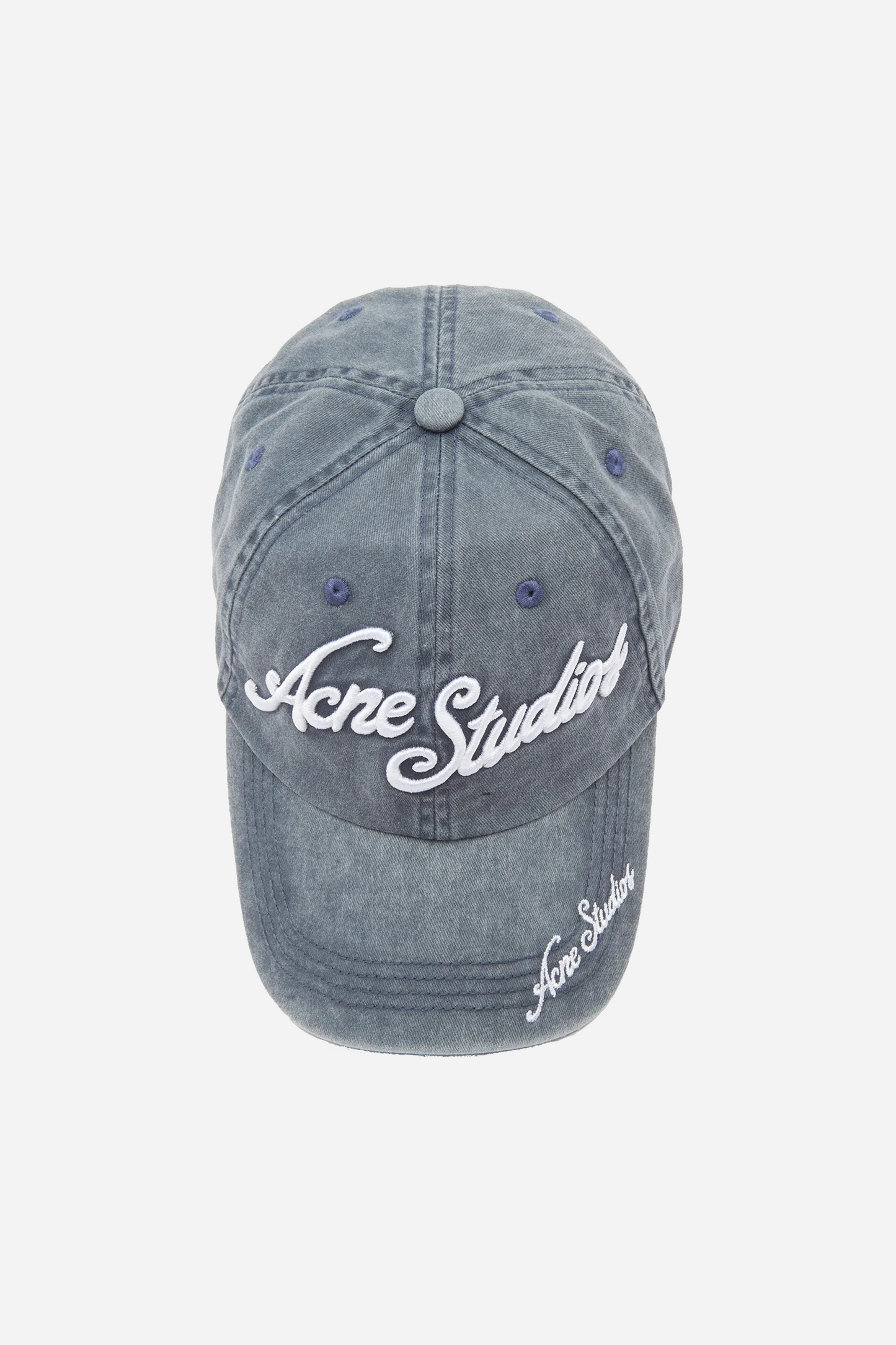 Logo Cap Faded Blue fra Acne Studios. Denne kasket er fremstillet i bomuld. Den er designet med med et Acne Studios logo fortil og på skyggen. Kasketten kan justeres bagpå.