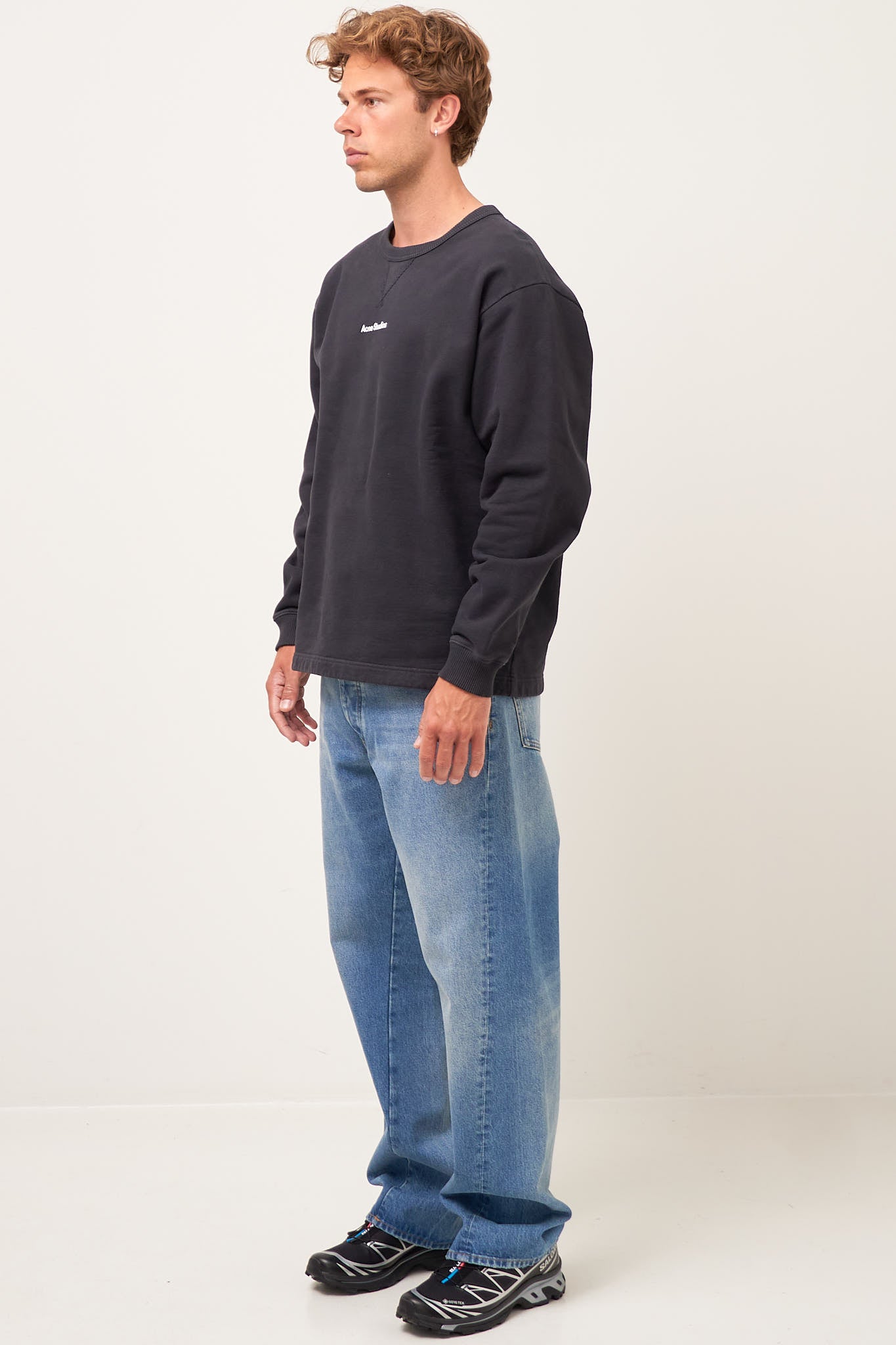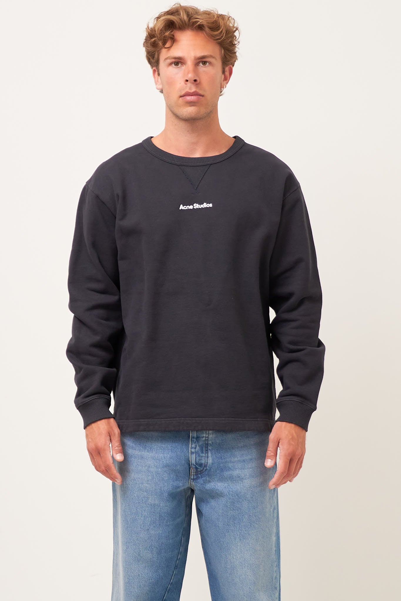 Logo Stamp Sweater Black fra Acne Studios. Denne sweater er fremstillet i en kraftig bomuld. Den er designet i en afslappet pasform med rib kanter og et Acne Studios logo på brystet.
