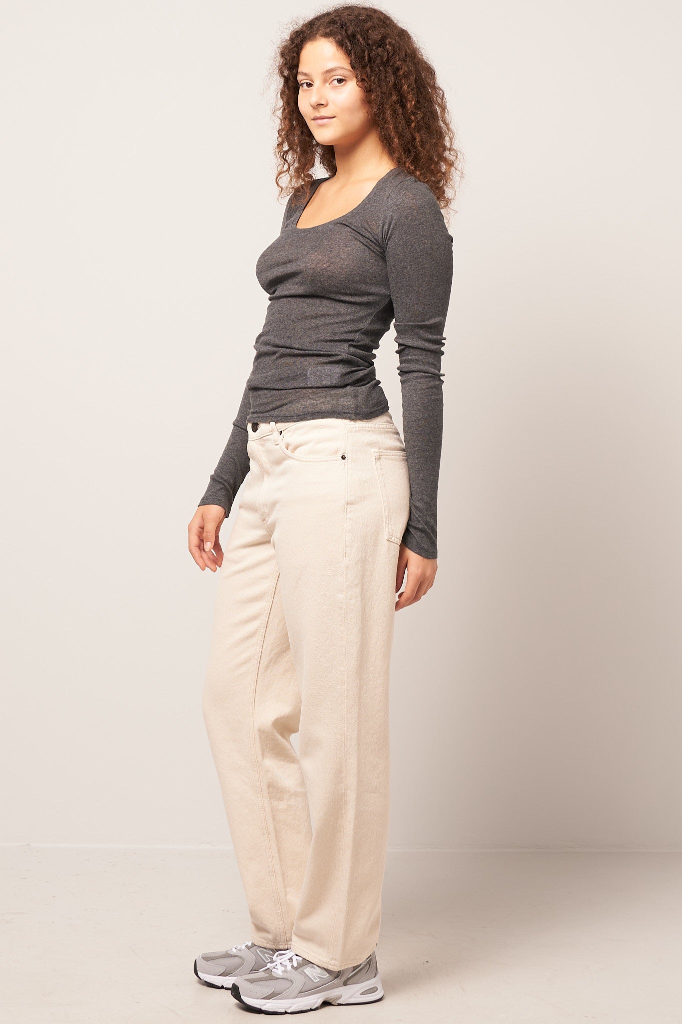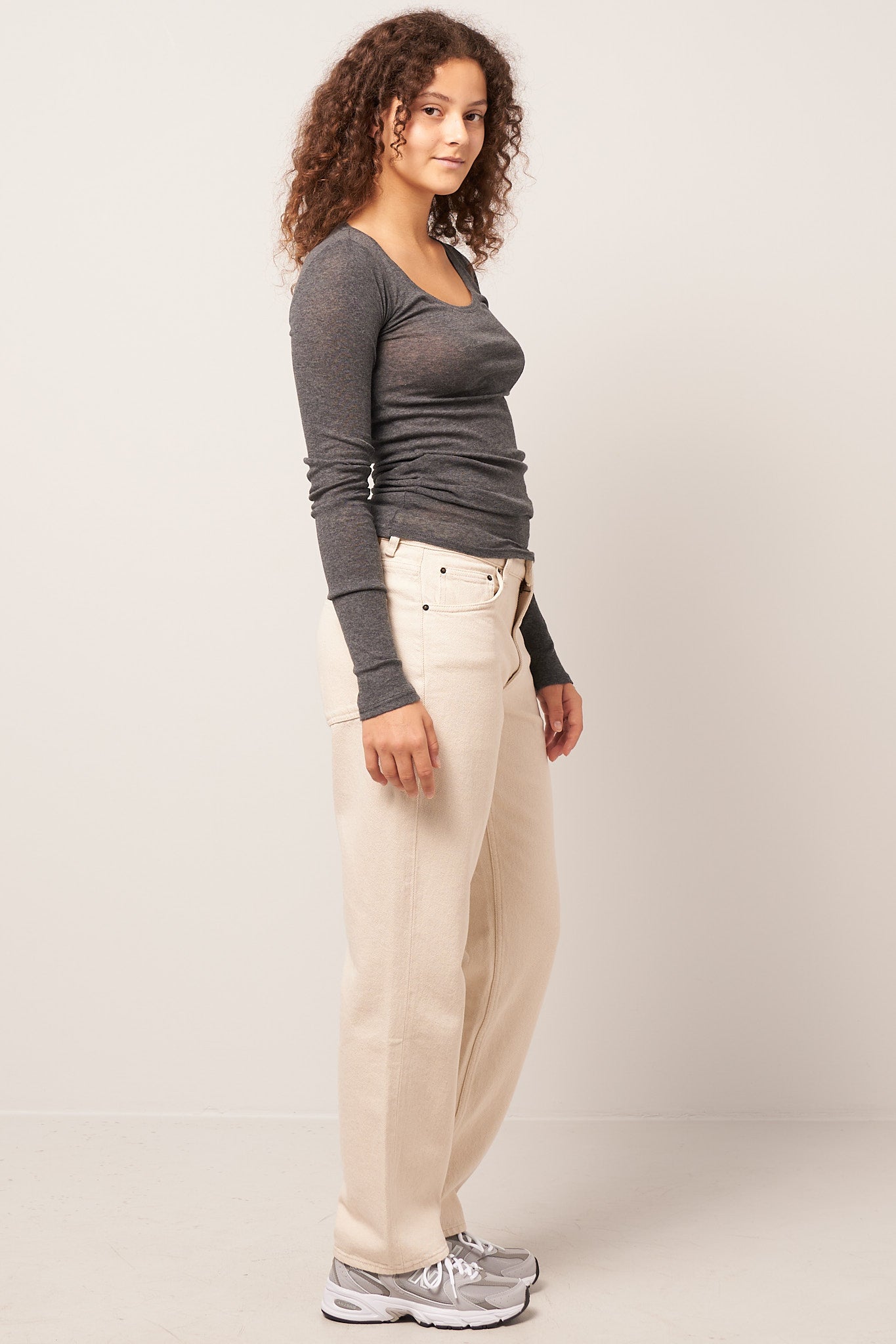 Massachusetts LS T-shirt Charcoal Melange fra American Vintage. Denne top er fremstillet i bomuld. Den er designet med en dyb rund halsudskæring, lange ærmer og har en tætsiddende pasform.