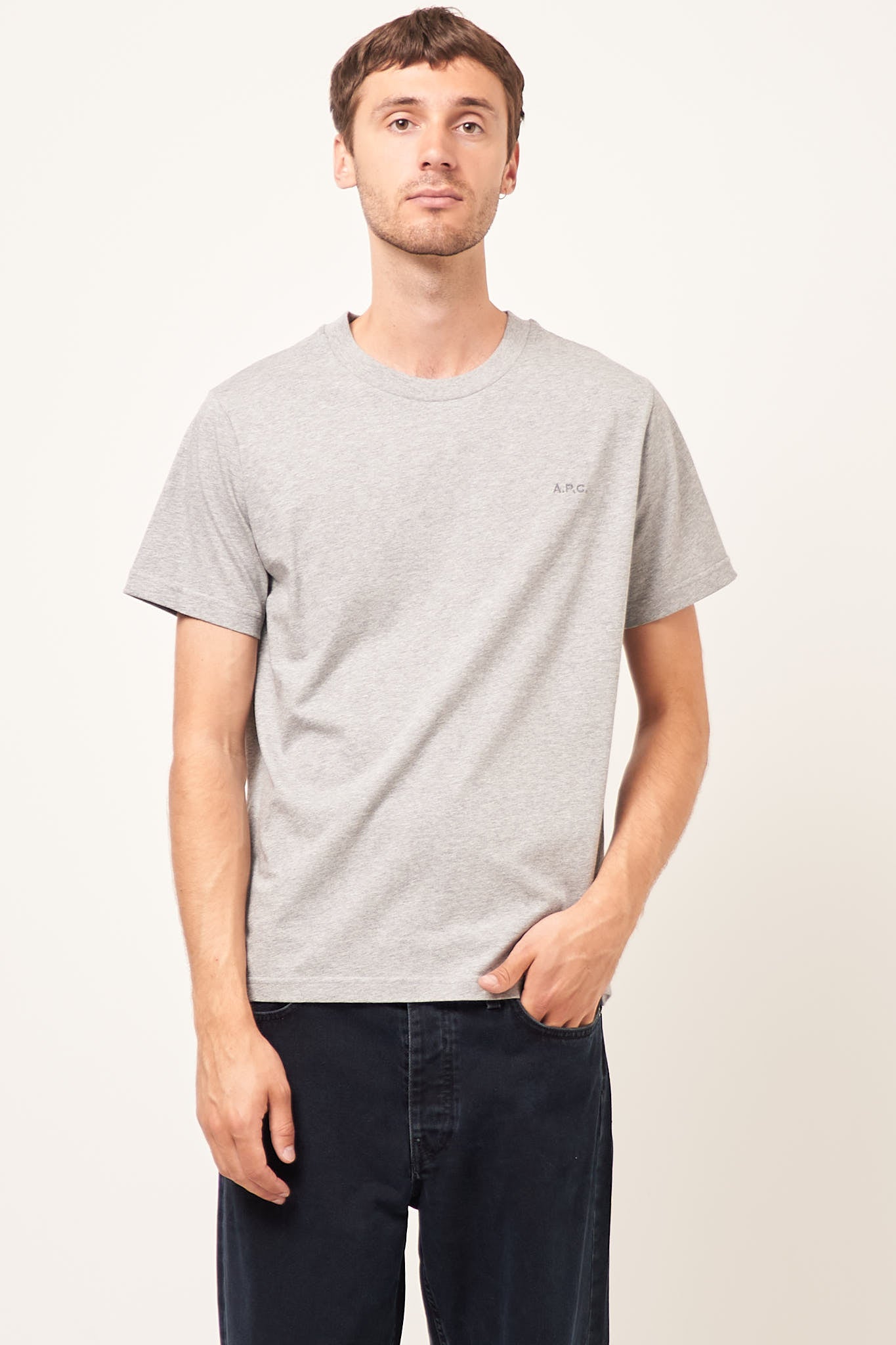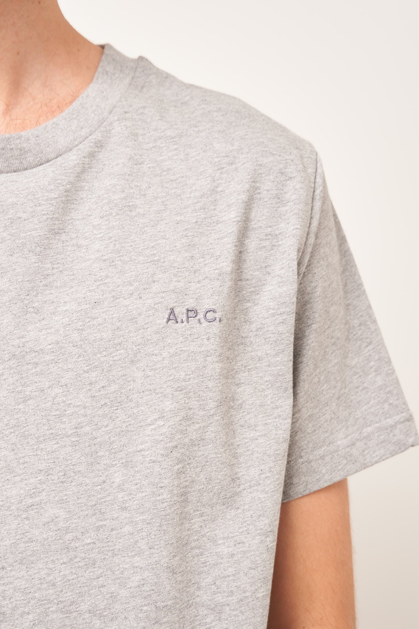 Standard APC T-Shirt Brodee Grey Melange fra A.P.C. Denne T-shirt er fremstillet i bomuld. Den er designet i en normal pasform med rund hals og korte ærmer. T-shirten er detaljeret med et broderet A.P.C. logo i venstre side af brystet.