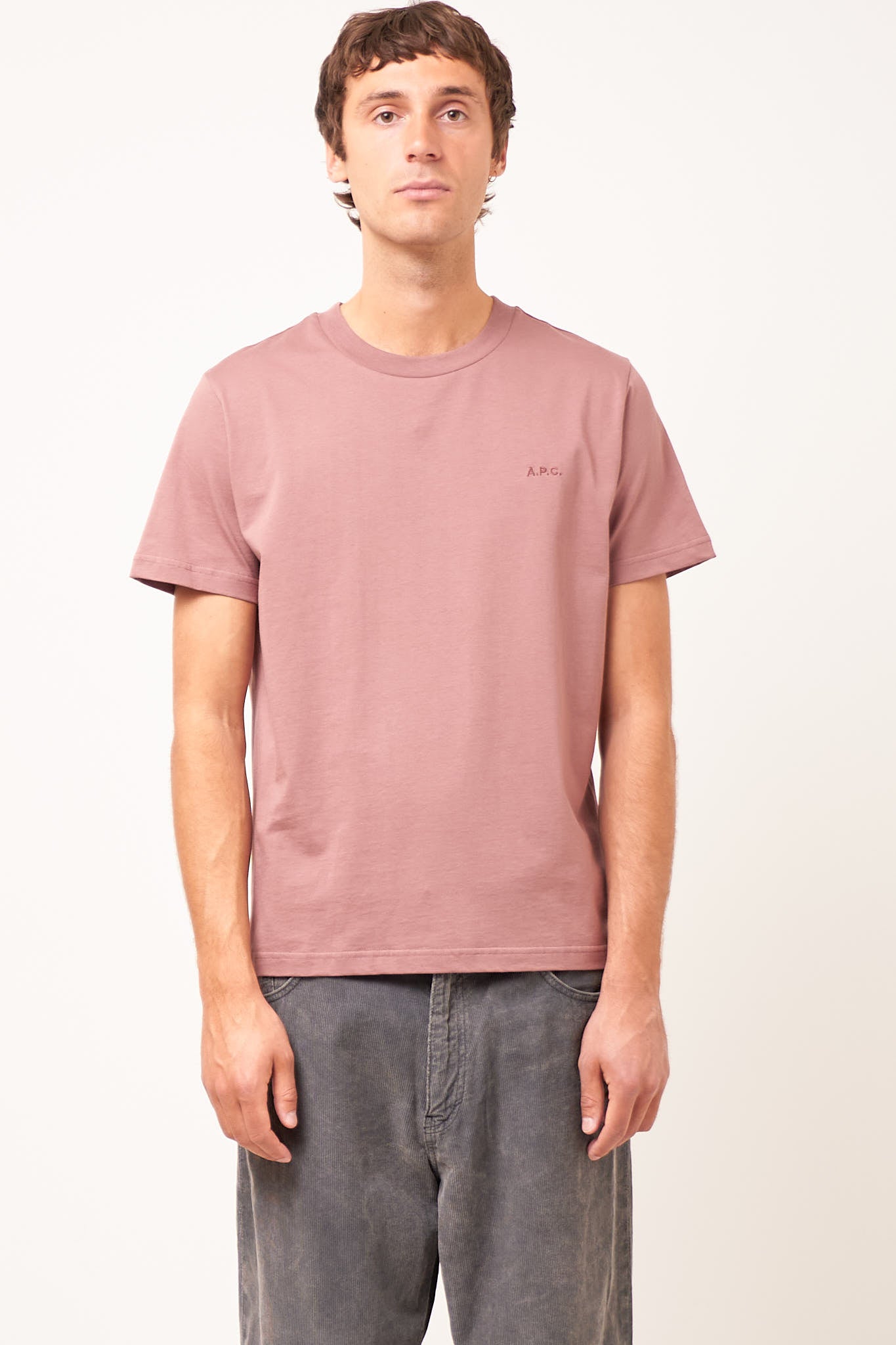 Standard APC T-Shirt Brodee Vieux Rose fra A.P.C. Denne T-shirt er fremstillet i bomuld. Den er designet i en normal pasform med rund hals og korte ærmer. T-shirten er detaljeret med et broderet A.P.C. logo i venstre side af brystet.