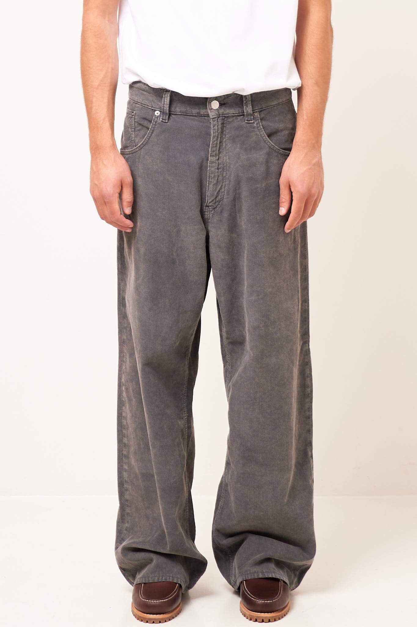 Super Wide Cord Trousers Grey fra Sunflower. Disse bukser er fremstillet i en bød fløjlsbomuld. De har en bred pasform med mellemhøj talje og 5 lommer. Bukserne lukkes med lynlås og knap.