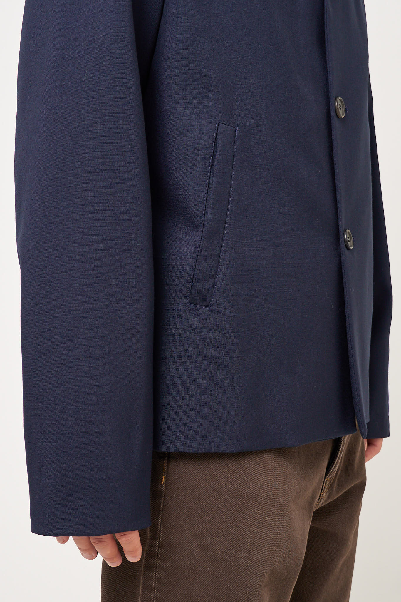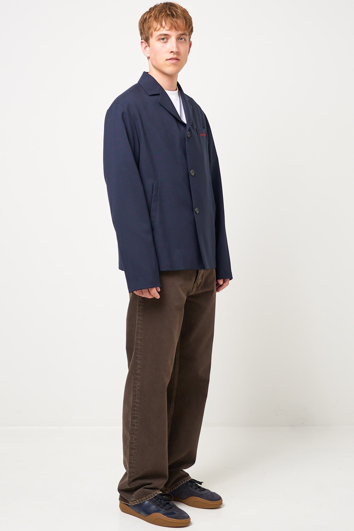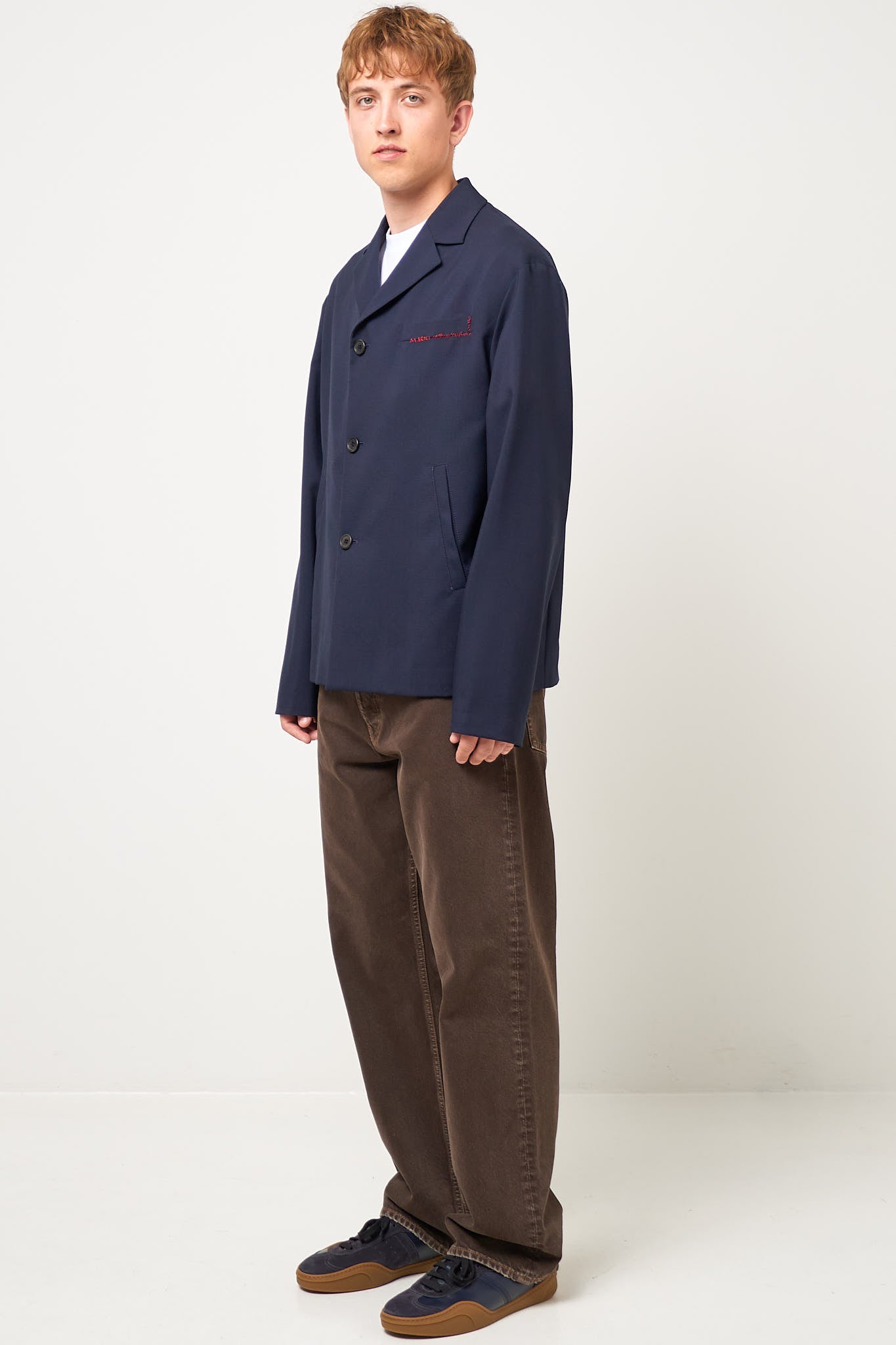 Wool Jacket Marni Symbol Blue Black fra Marni. Denne jakke er fremstillet i en fin uld. Jakken har en normal pasform med en enkelt brystlomme med et Marni logo på. Jakken lukkes med knapper.